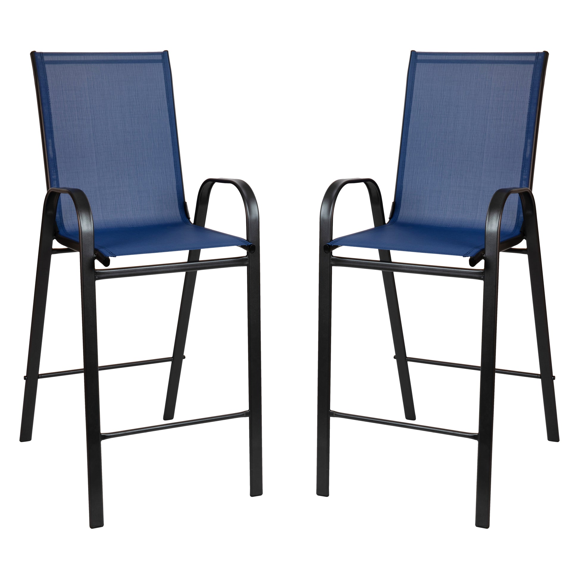 2 Pack Brazos Series Navy Outdoor Barstools with Flex Comfort Material and Metal Frame Navy 2-JJ-092H-NV-GG
