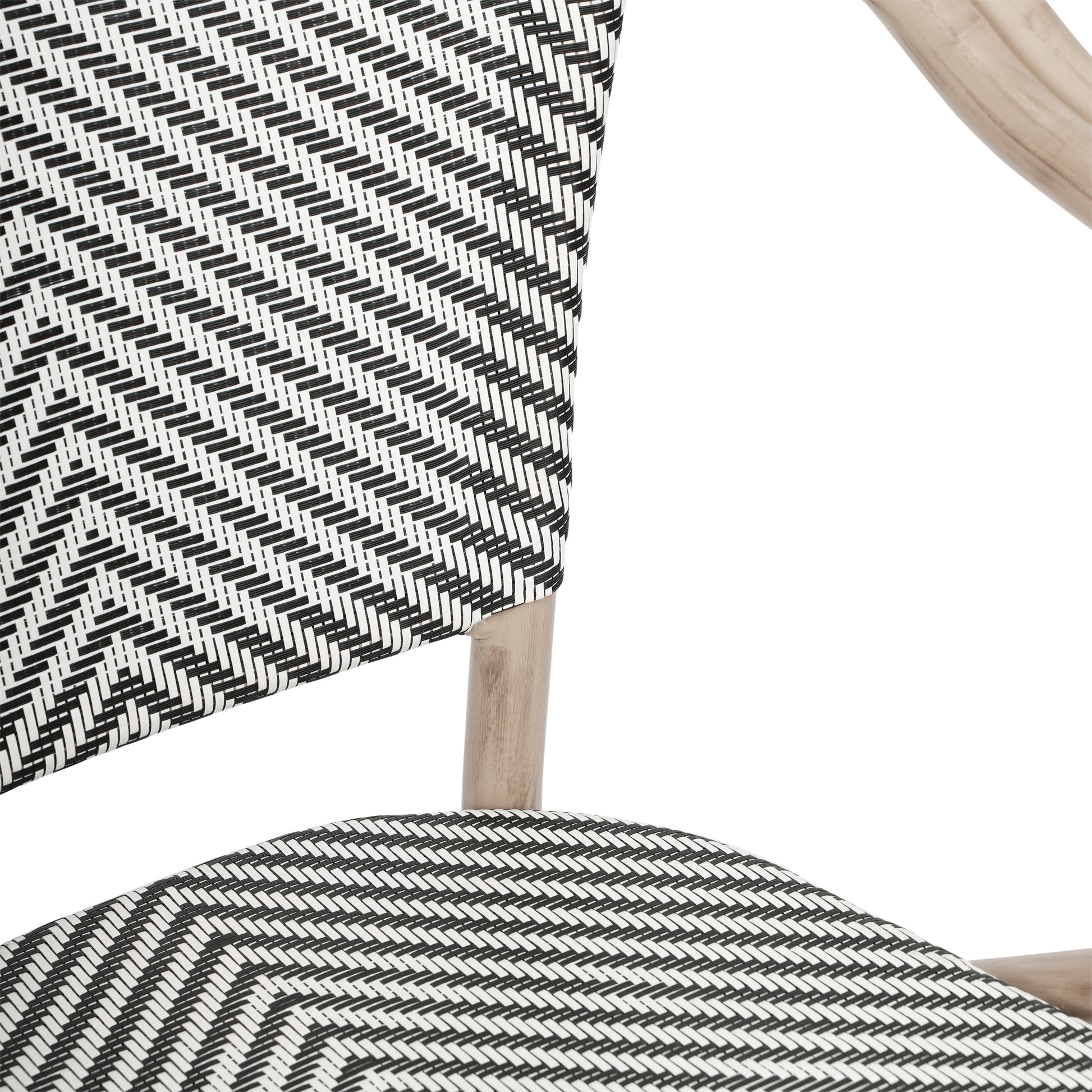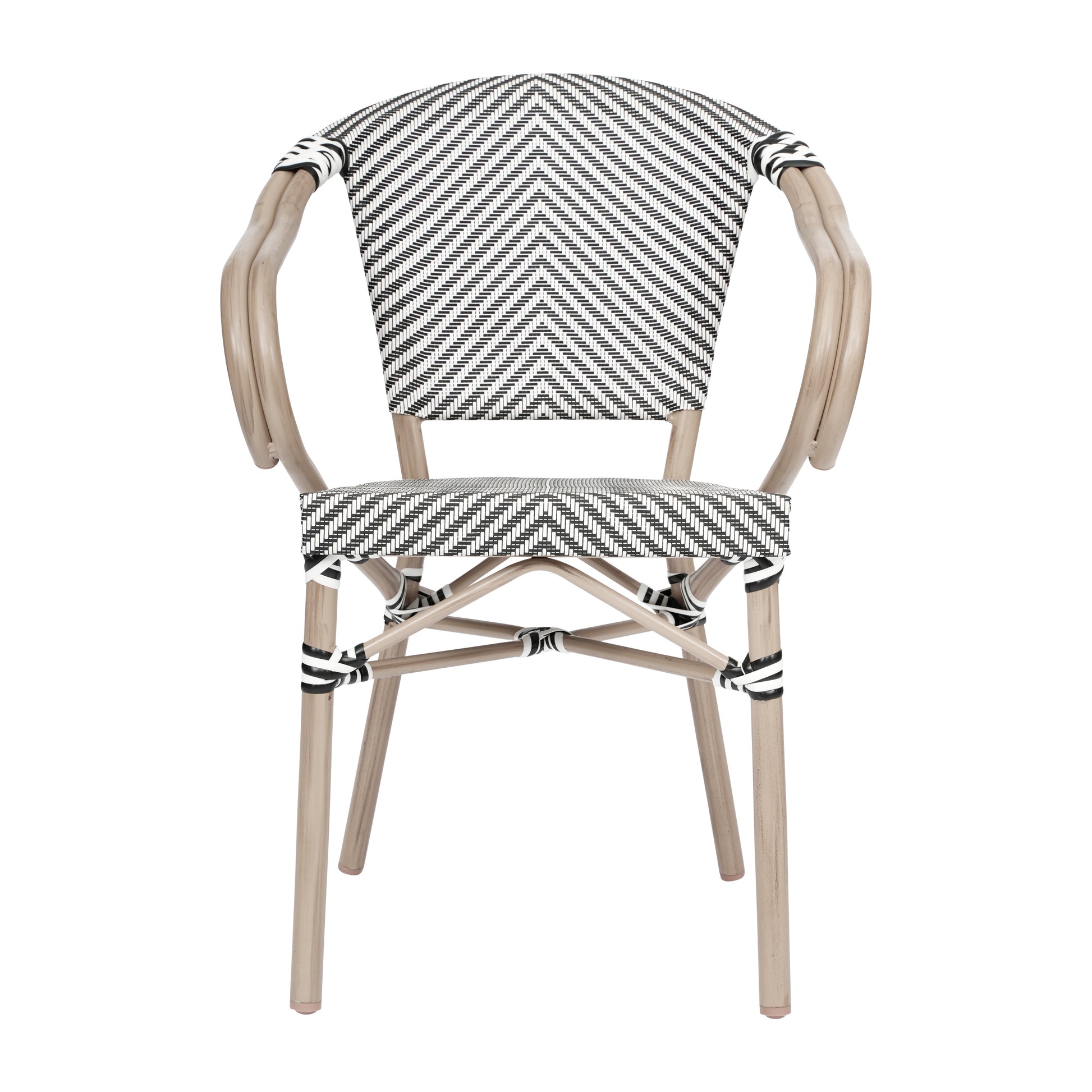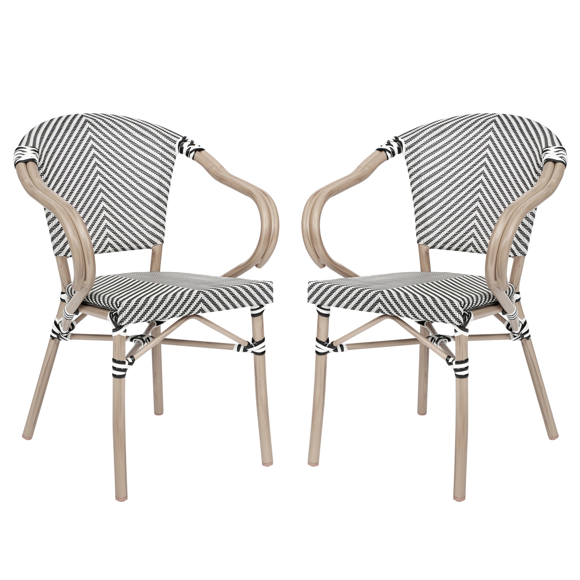 2 Pack Marseille Indoor/Outdoor Commercial Bistro Stacking Chair with Arms, Black/White Textilene and Bamboo Aluminum Frame in LT Natural Black & White/Light Natural Frame 2-SDA-ADS642108-BLKWH-LTNAT-GG