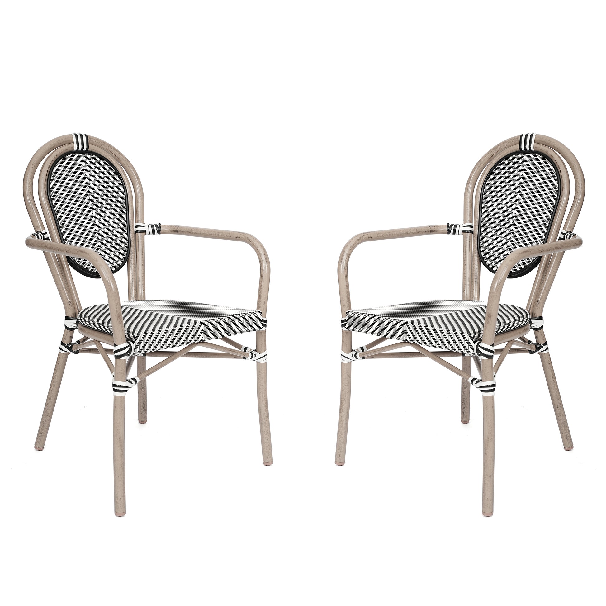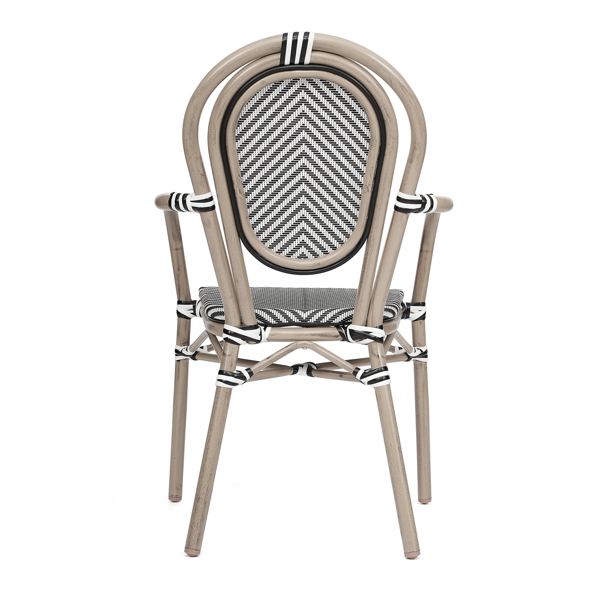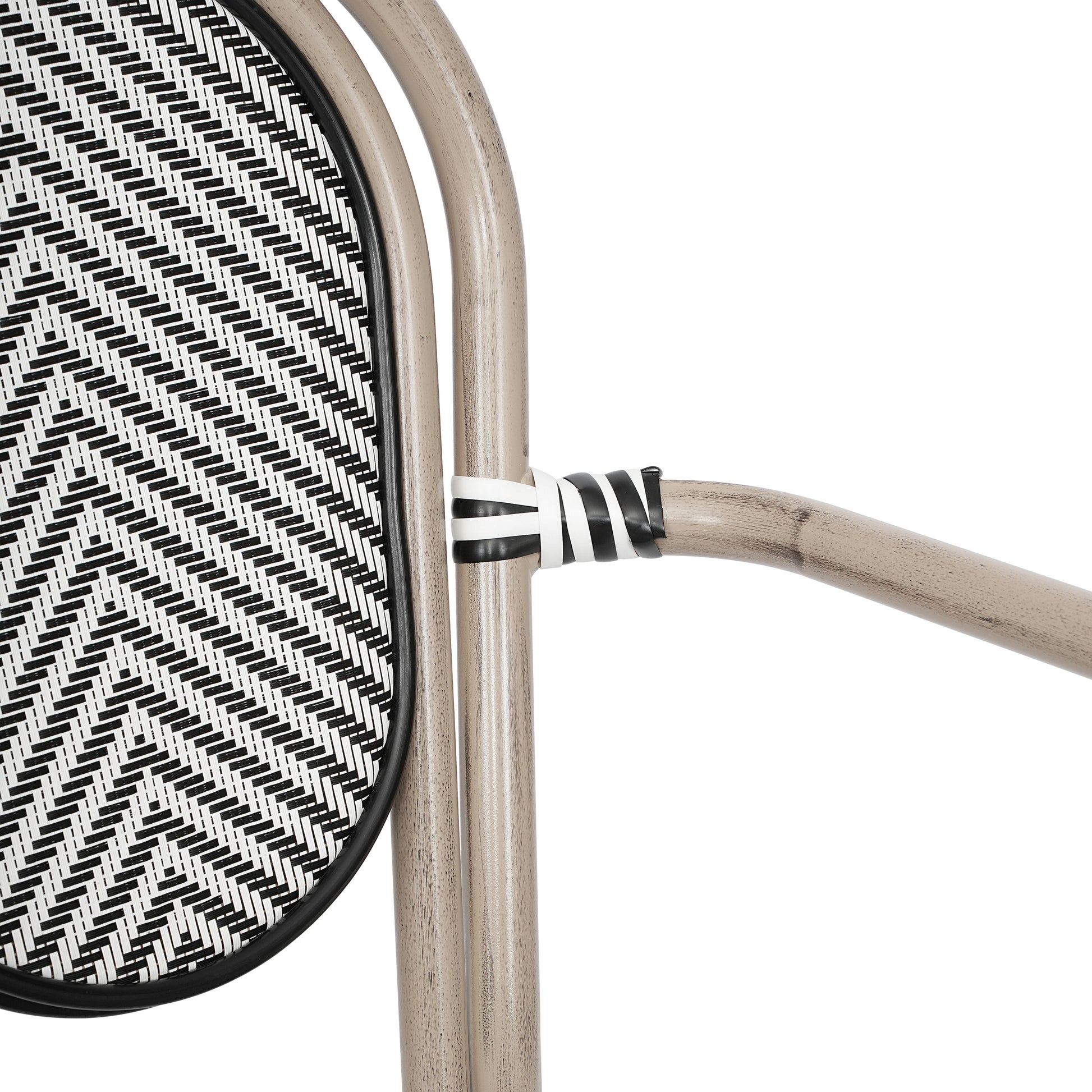 2 Pack Marseille Indoor/Outdoor Commercial Thonet Bistro Stack Chair with Arms, Black/White Textilene and Bamboo Aluminum Frame in LT Natural Black & White/Light Natural Frame 2-SDA-AD642002A-TXT-BLKWH-LTNAT-GG