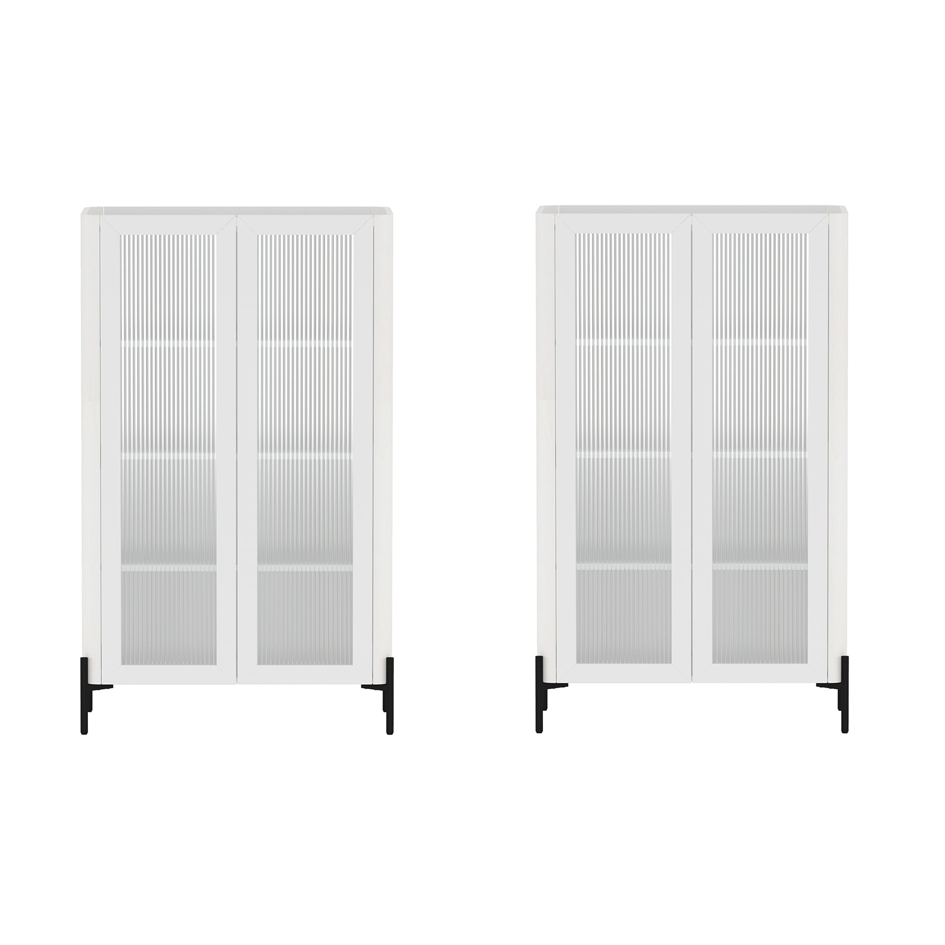 Abbey Modern 32" Tempered Glass Bookcase Cabinet in White (4-Shelf) - Set of 2 2-BC002-WH