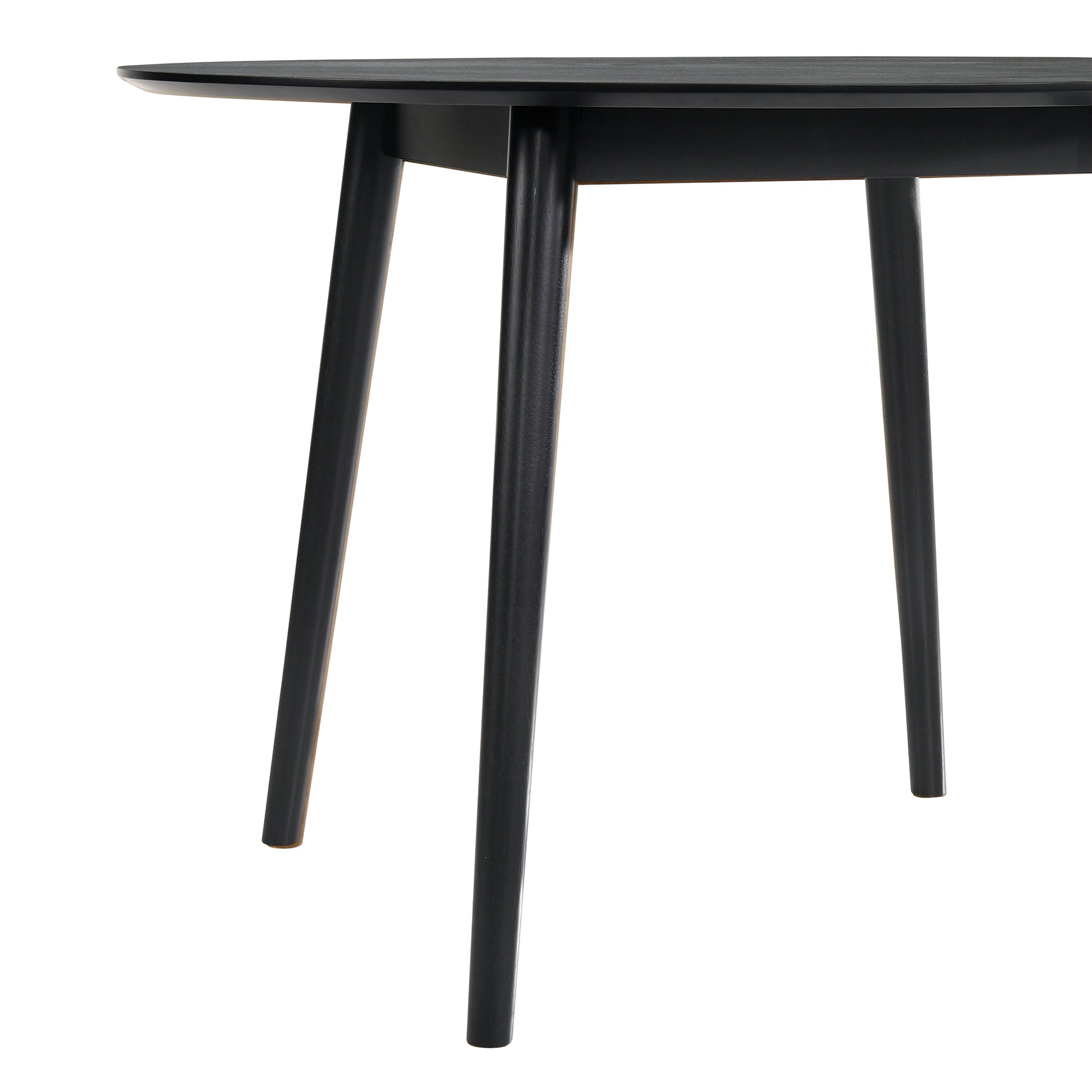 The Arcadia 48" Round Dining Table in Black Wood offers a clean and simple aesthetic that is stylish and functional. Hints of Scandinavian design and a mid-century modern feel come together to create the perfect space to share a meal with friends and family. Round tables are great because they can accommodate the most people. It's easy to squeeze in an extra table setting or two where there aren't any corners! They're better for small rooms or rooms that aren't square, as their rounded edges help create easy flow through the room. Circular tables are perfect for small gatherings and make an intimate and cozy setting for conversation, the Arcadia is ideal for your eat in kitchen or dining room. The Arcadia round dining table is available in your choice of a 42" or 48" size and a black or walnut wood finish.
