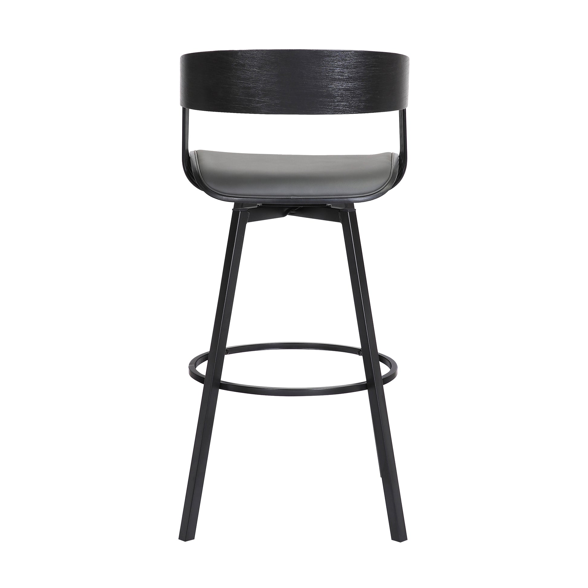 Athena Swivel Wood Counter and Bar Stool with Black Metal Base