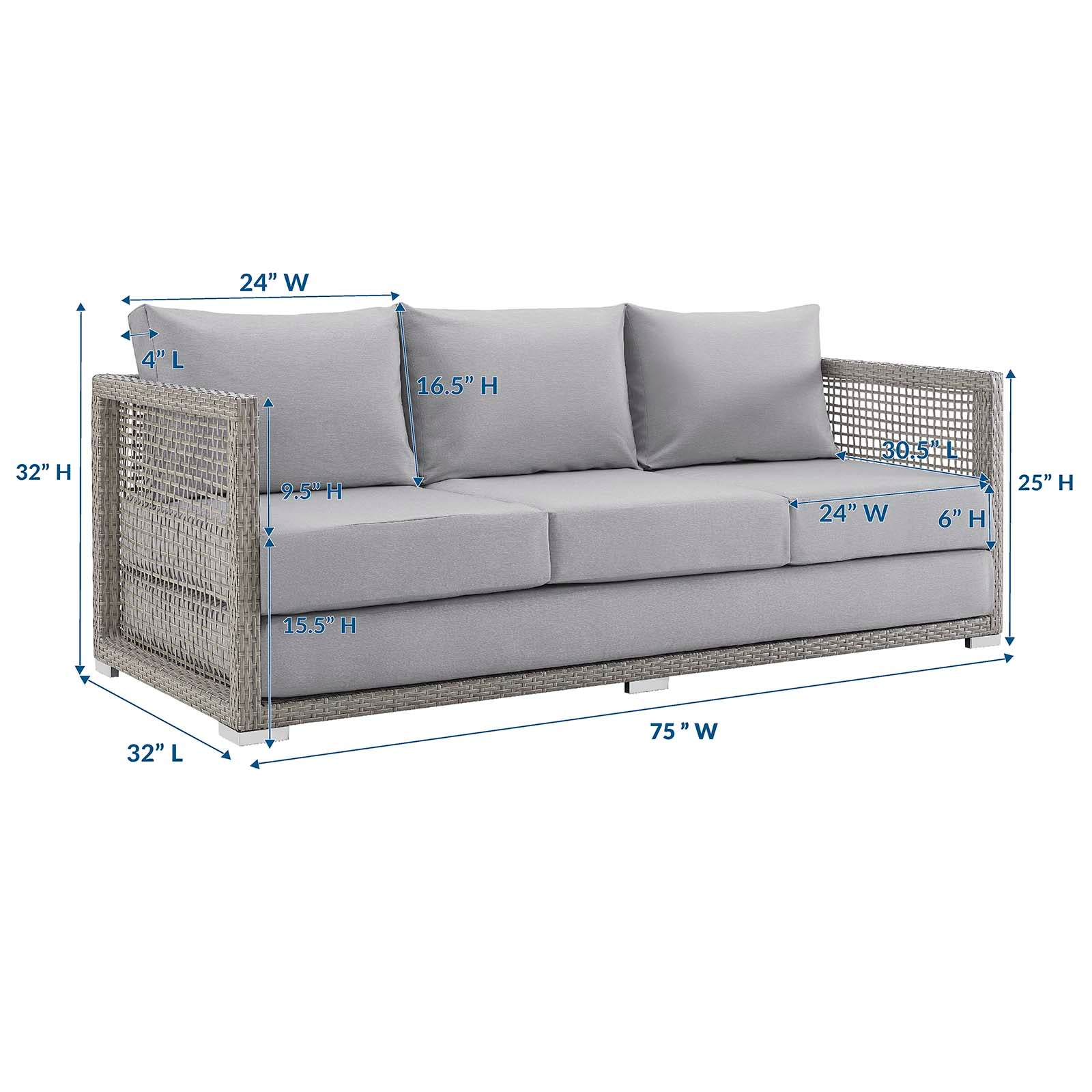 Transform your outdoor space into a stylish retreat with this versatile outdoor patio sofa. Featuring a sophisticated synthetic wicker rattan weave, this sofa is designed to blend seamlessly with your patio, backyard, or poolside setting. The durable powder-coated aluminum frame ensures longevity, while the all-weather fabric cushions provide comfort and resilience against the elements. With machine washable and fade-resistant properties, these cushions maintain their vibrant look, ensuring your outdoor area remains inviting for years to come.