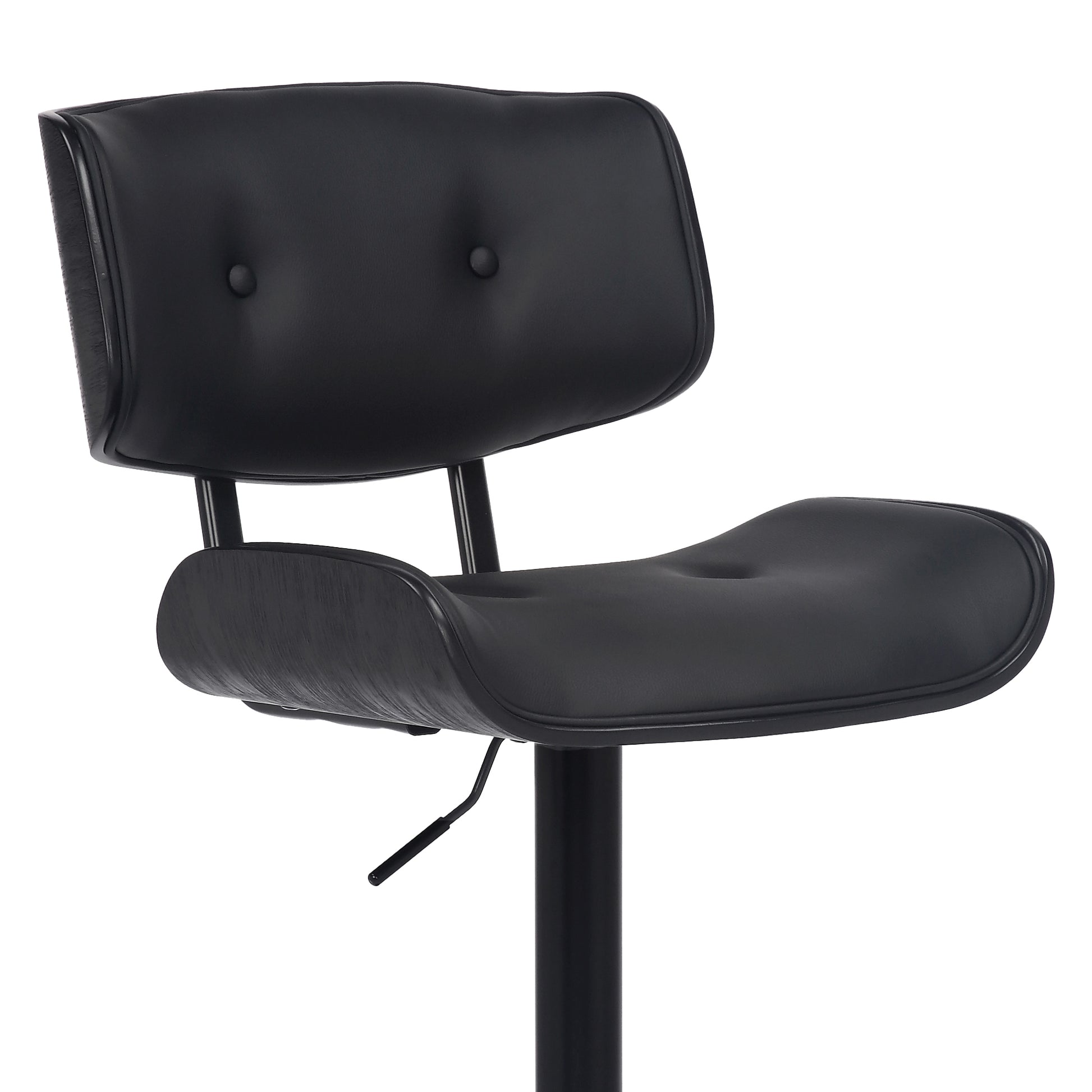 Brooklyn Adjustable Swivel Faux Leather and Wood Bar Stool with Base