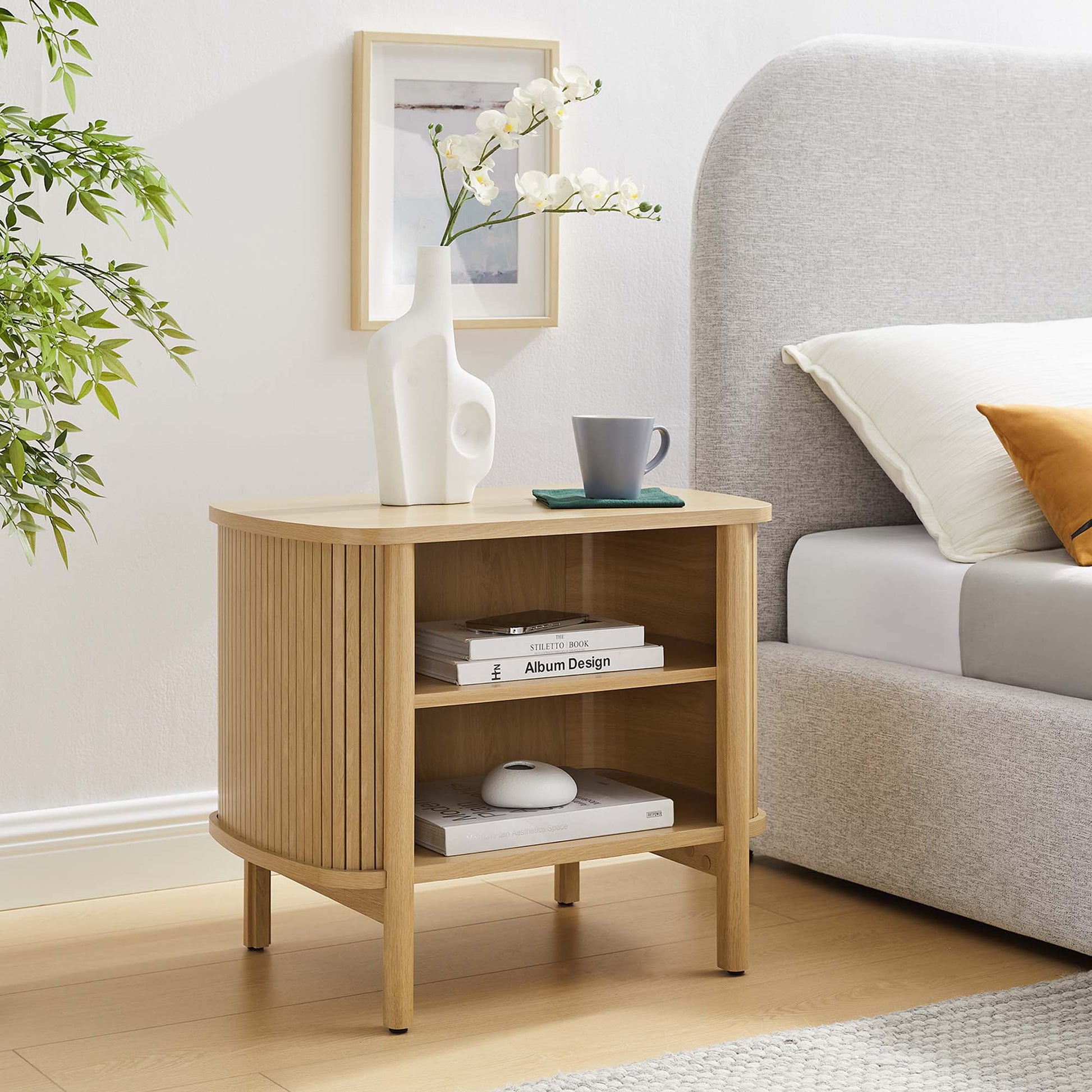 Transform your bedroom or apartment decor with the Cadence Nightstand collection, a perfect blend of style and functionality. Designed to enhance any space, these modern nightstands feature unique rounded corners and fluted details that add a contemporary flair to your interiors. Crafted from high-quality materials such as rubberwood, particleboard, and MDF, each piece is built for durability and showcases a stunning wood grain laminate that complements the organic aesthetics of your living area.