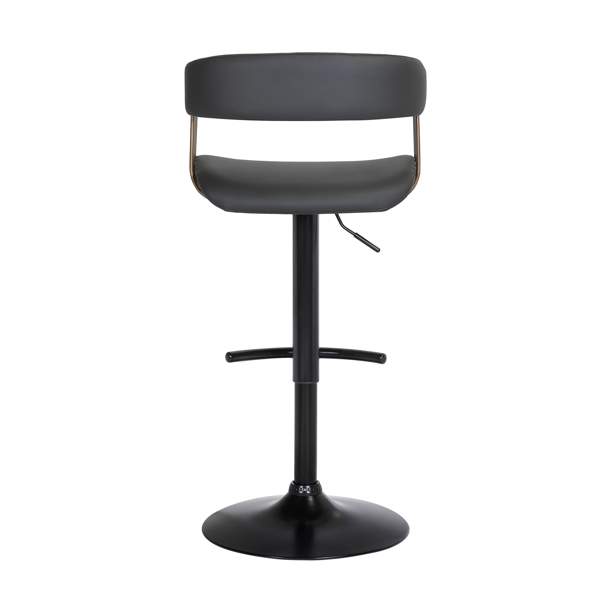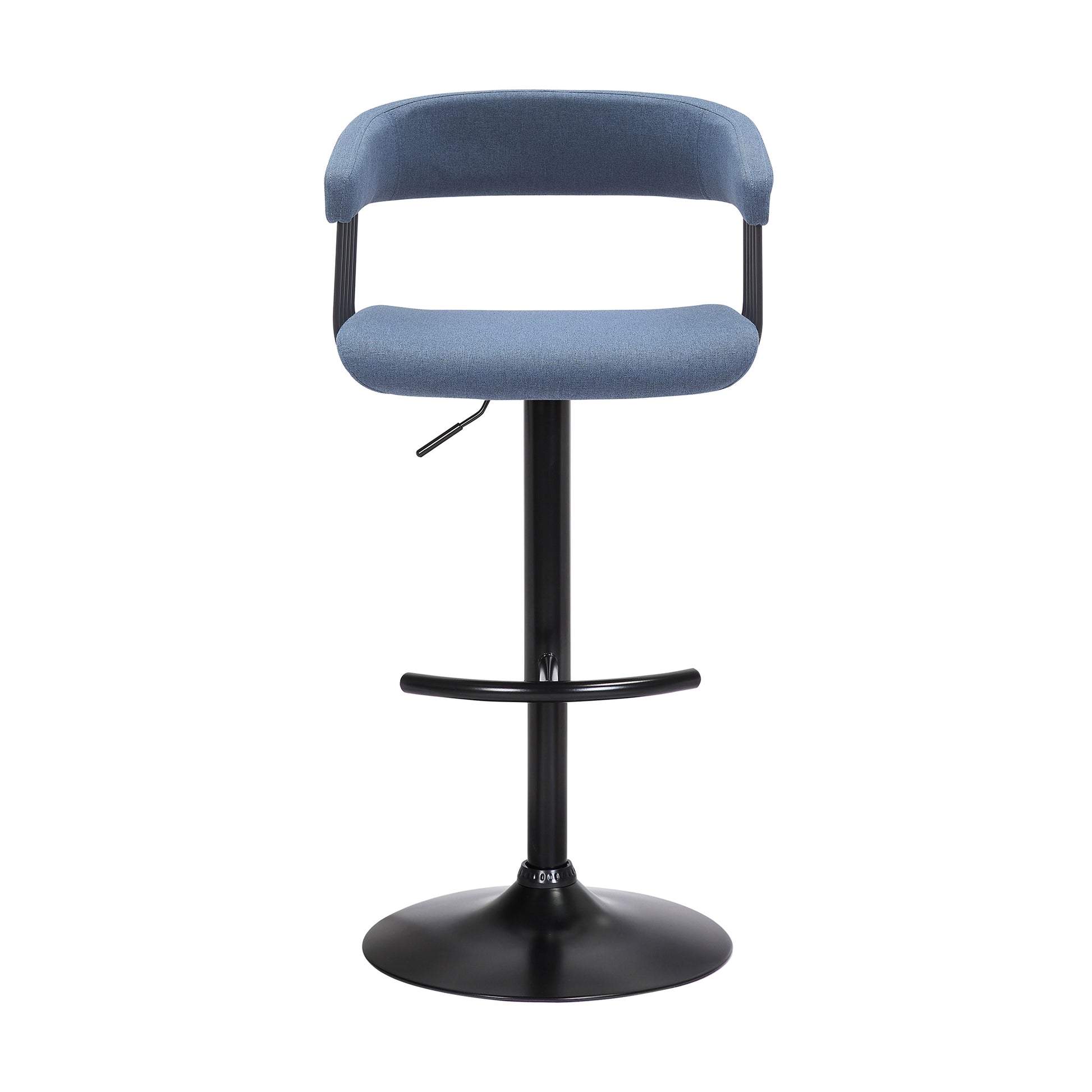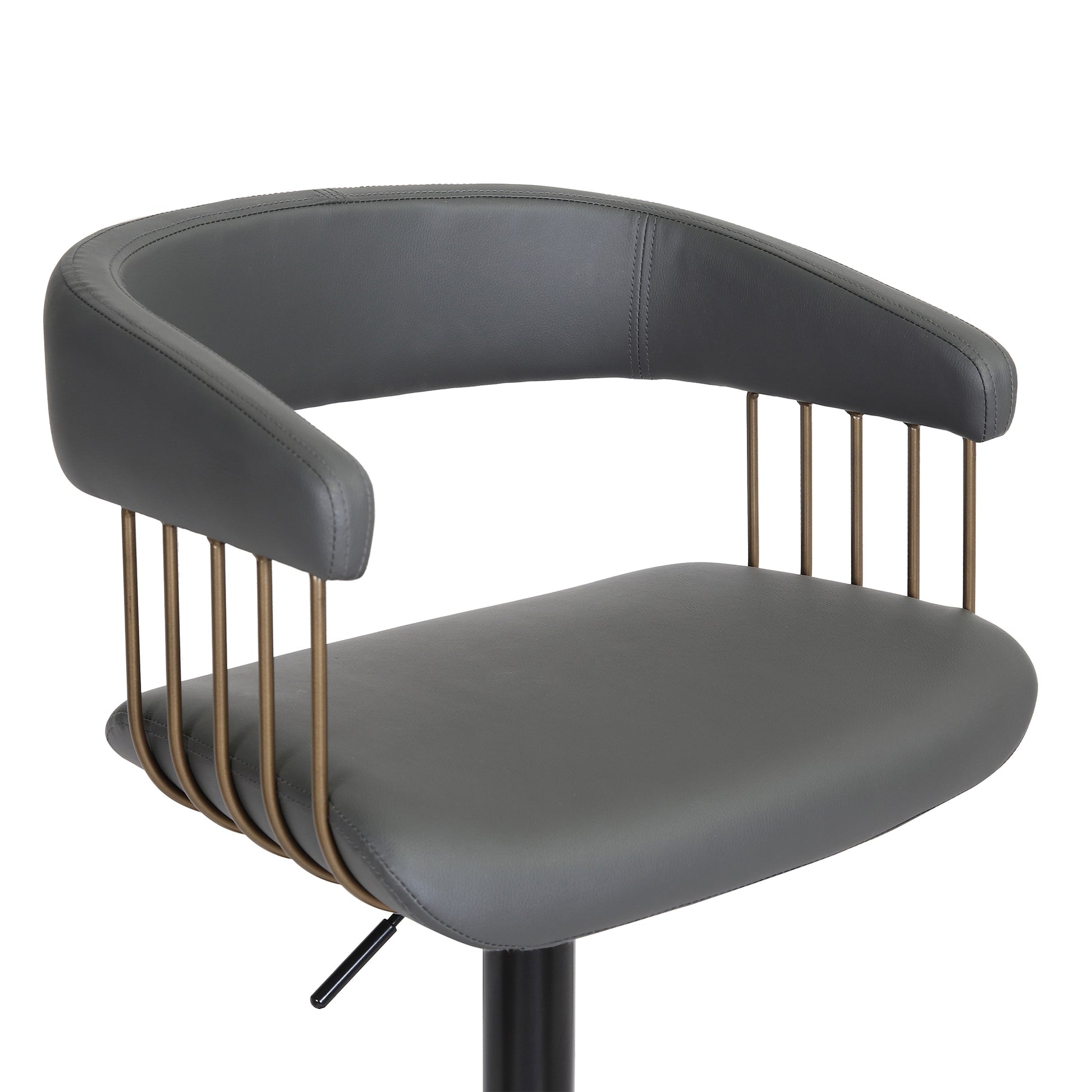 Calista Adjustable Bar Stool in Faux Leather and Fabric with Black and Golden Bronze Metal