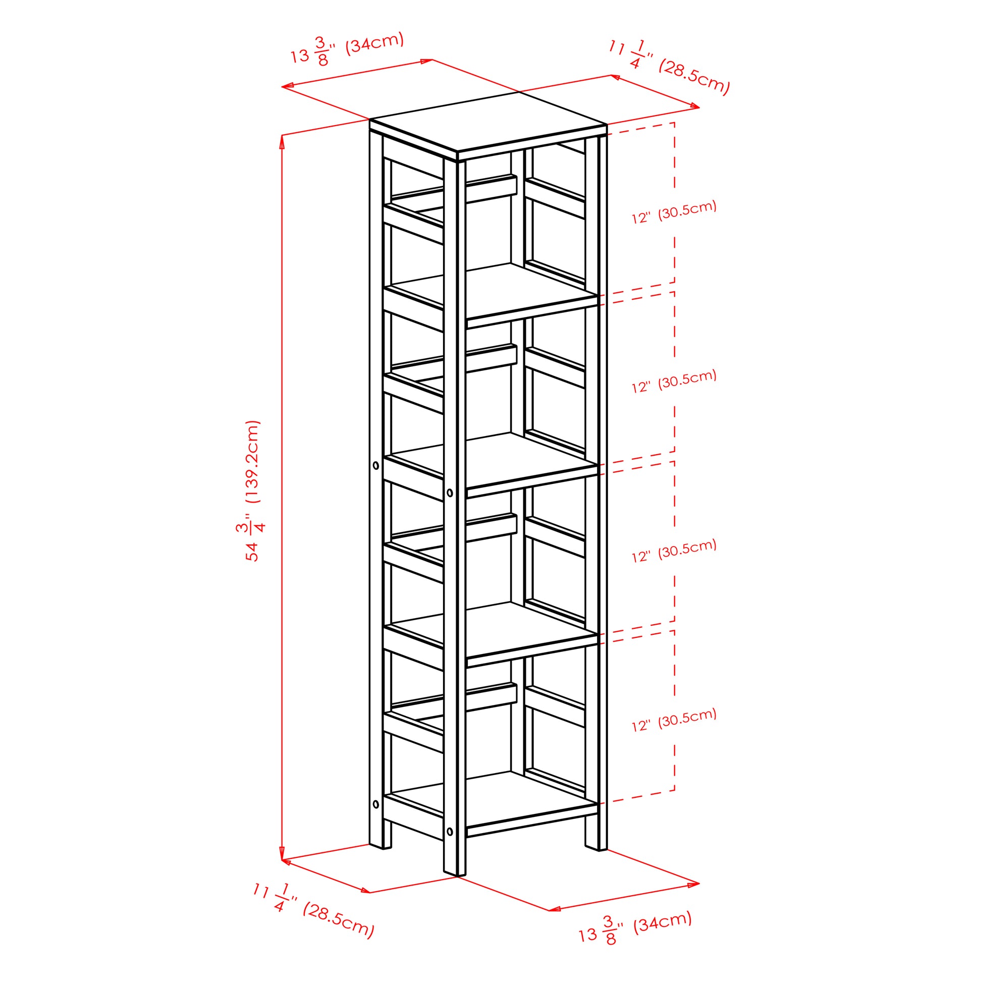 Combine extra storage space with the convenience of the versatile Winsome Wood Capri 5-Piece Shelf and Baskets. Great narrow shelf that includes 4 foldable baskets for added organization. Keep seasonal accessories handy in the closet or use as a standalone bookcase in the family or living room. Finished in a rich espresso and made of solid wood for long-lasting durability. The set of baskets are made up of beige fabric with front and back handles for carrying purposes and can hold up to 15lbs (evenly distributed). Prompt up and these baskets are 10.06”W x 10.97”D x 9”H. Great size to use as a magazine holder, file holder, or art project holder. They are great for decorative storage and organization. When not in use, they fold for easy storage taking up almost no space. So, whether you need it in the mud room for shoes, laundry room for the towels and detergents, or for your books in your home office, this 4-section shelf offers stylish organization for all your essentials. This set is shipped in two boxes. The shelf will ship separately and will include the hardware necessary for assembly.Dimensions : 13.39 in. Wide 11.22 in. Deep 54.8 in. High