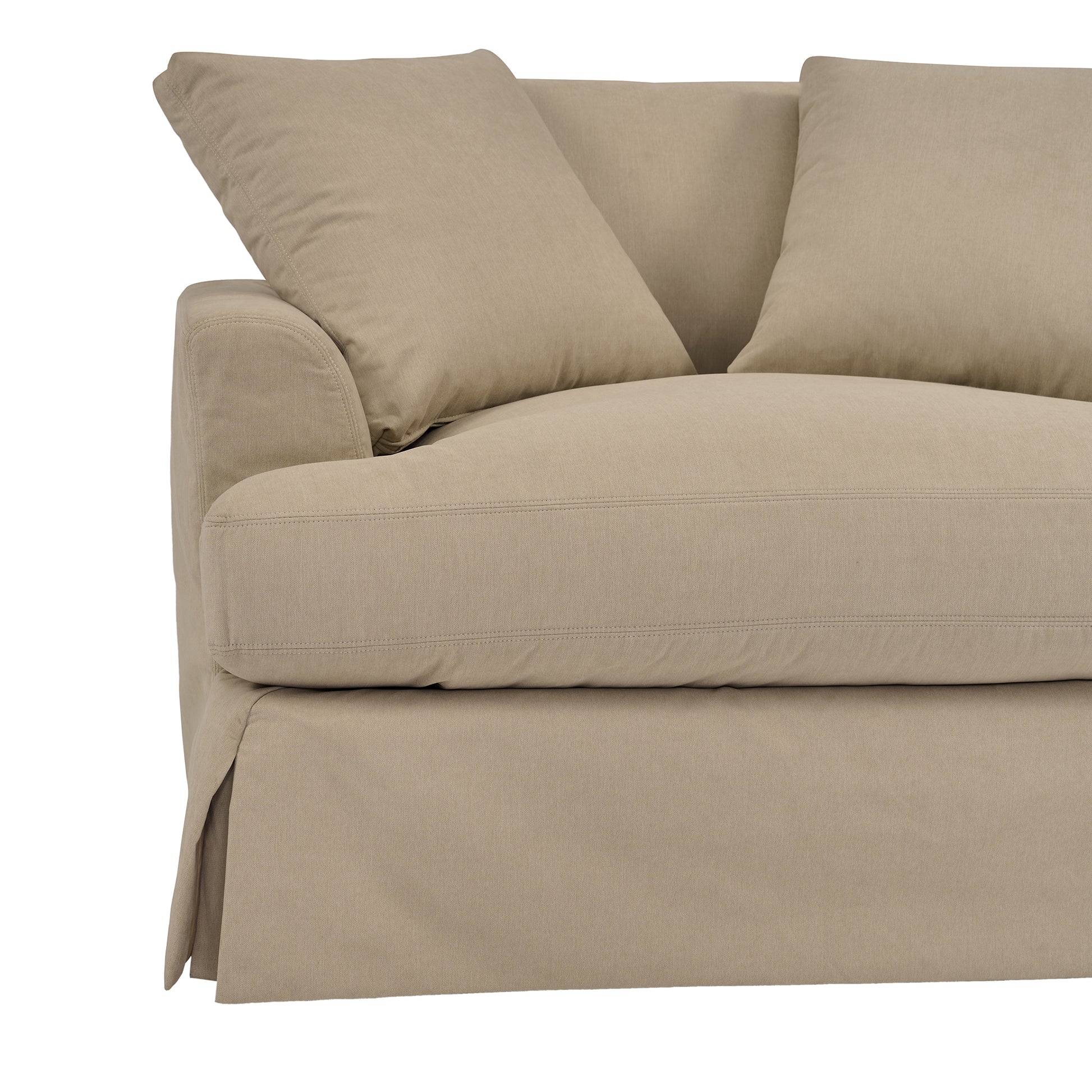 Enhancing both aesthetics and practicality, the dressmaker style sofa skirt adds a refined finish while concealing the chair's base, creating a polished and unified look in your living space. For a personalized touch, two coordinating toss pillows are included, adding a pop of color and texture to your decor. Maintenance and customization are effortless with this accent chair; the reversible and removable cushion covers, equipped with a convenient zipper closure, make it easy to keep your chair looking pristine and fresh.
