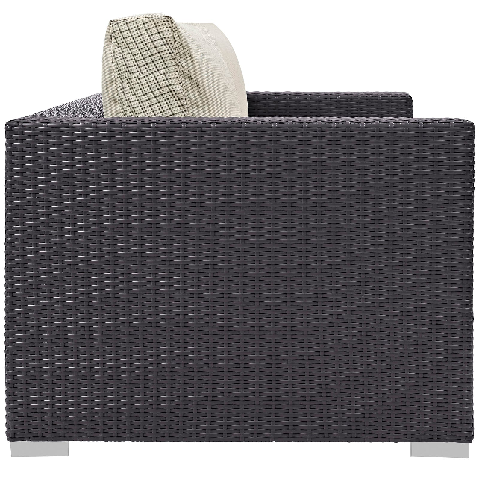Transform your outdoor space into a stylish retreat with this exquisite patio loveseat from the Convene Outdoor Sectional series. Crafted with a durable synthetic rattan weave and a sturdy powder-coated aluminum frame, this versatile loveseat is designed to adapt to your spontaneous outdoor gatherings. Whether you’re hosting friends for a cozy evening or enjoying a quiet afternoon by the pool, this loveseat enhances the ambiance of any patio, backyard, or poolside setting.