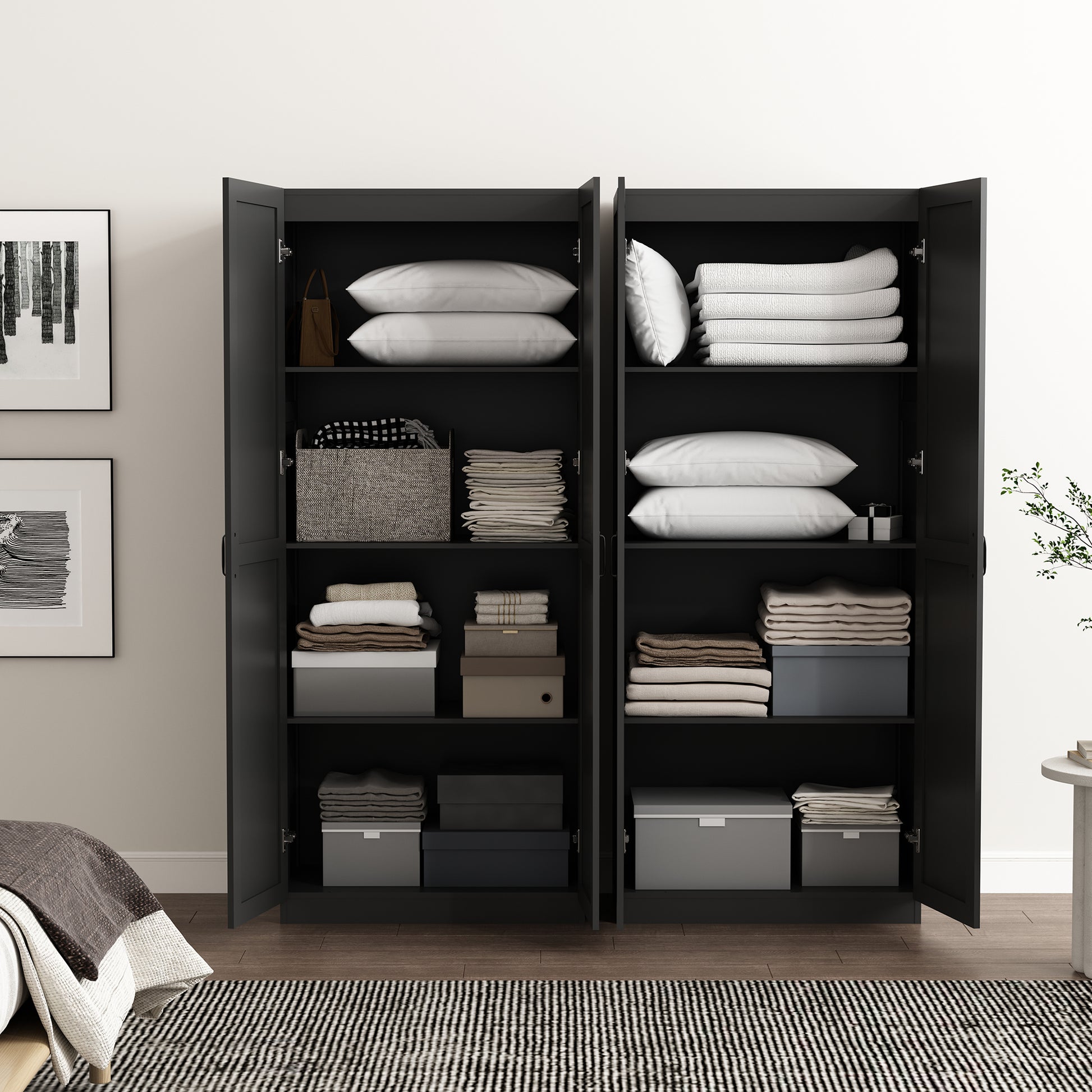 The Cornelia Storage Closet pairs smart storage with simple beauty. Its thoughtful silhouette fits effortlessly into any space, while spacious adjustable shelves keep your essentials neatly tucked away. Soft-close doors open with ease, offering a quiet touch of luxury in a clean, modern form. • Modern Free Standing Wardrobe Closet with 4 Large Shelves for Bedroom and Storage Use. Set of 2.