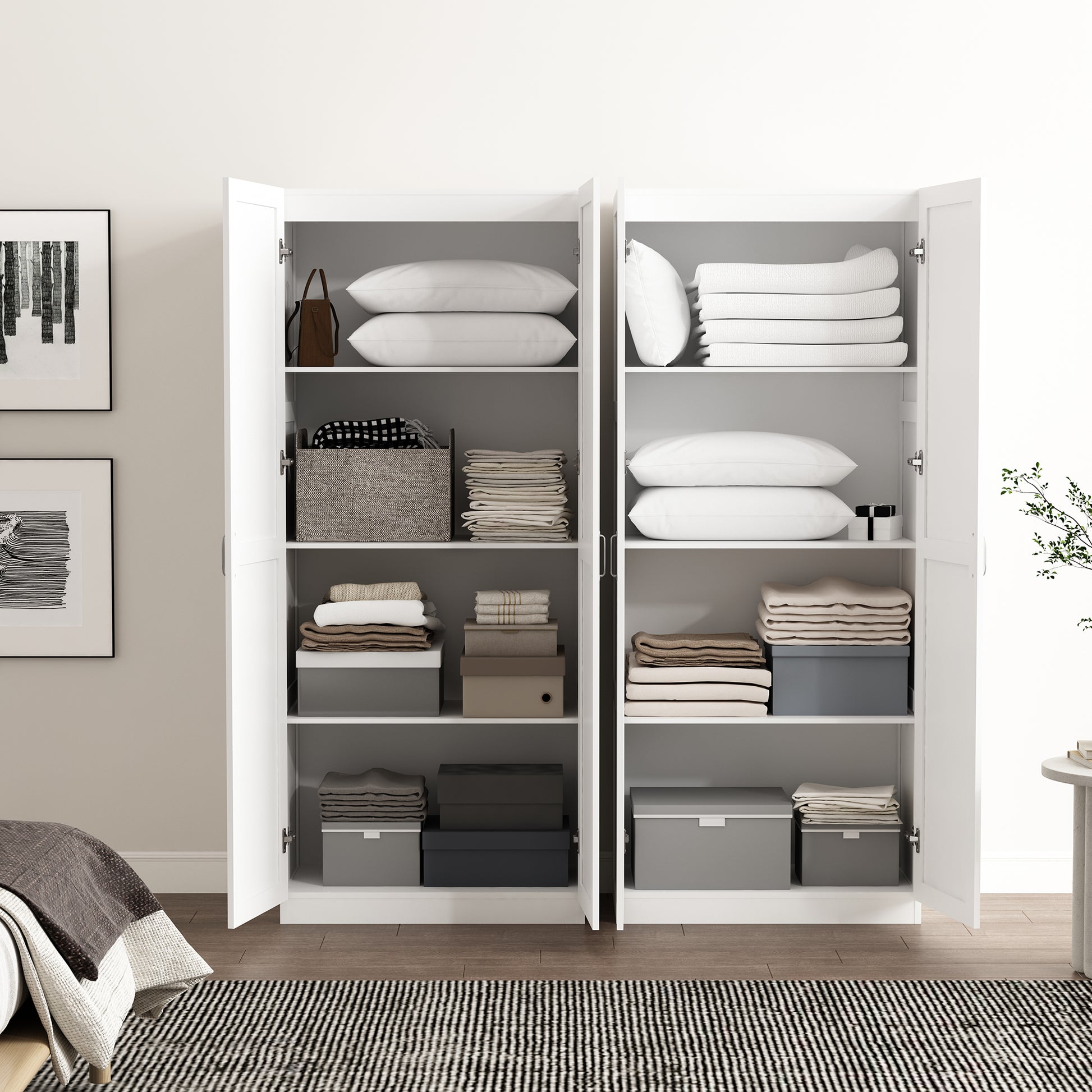 The Cornelia Storage Closet pairs smart storage with simple beauty. Its thoughtful silhouette fits effortlessly into any space, while spacious adjustable shelves keep your essentials neatly tucked away. Soft-close doors open with ease, offering a quiet touch of luxury in a clean, modern form. • Modern Free Standing Wardrobe Closet with 4 Large Shelves for Bedroom and Storage Use. Set of 2.