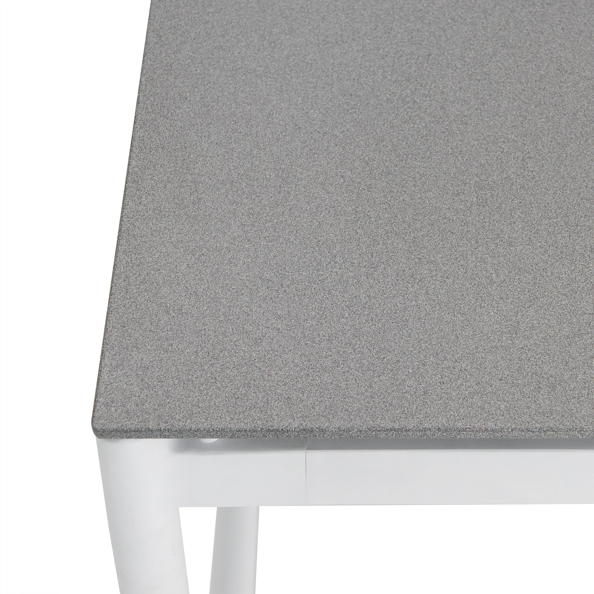 The Crown 4 Piece Aluminum and Teak Outdoor Seating Set with Cushions suits all your needs when it comes to outdoor lounging. Complete with a sofa, 2 club chairs, and a coffee table, this set is ideal for seating up to 5. UV and water-resistant upholstery allow the Crown set to last for many years to come and the convenient zipper closure on the cushions makes clean up a breeze! The teak accents on the sofa and chair arms match the table and give a warm touch to the overall modern design. The Crown 4 Piece Aluminum and Teak Outdoor Seating Set with Cushions is available in your choice of a black aluminum finish with dark gray cushions or white aluminum finish with light gray cushions.