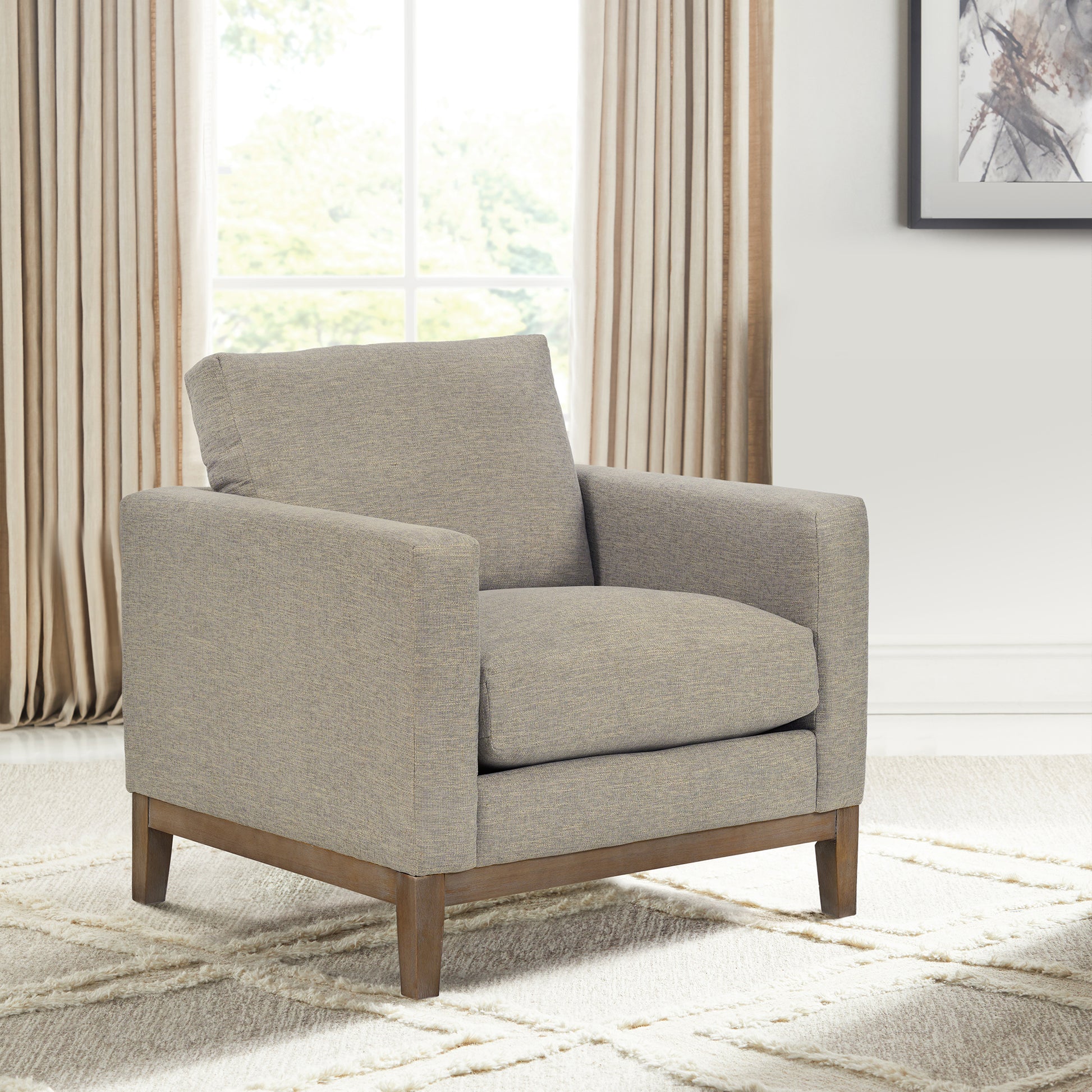 With compelling features, stunning design, and high-quality materials, this accent chair is the perfect addition to your living room, den, bedroom, or home office. The coastal gray finish on the wood base adds a touch of elegance, while the choice of upholstery options allows you to select the perfect fit for your space. Elevate your home decor with this exceptional accent chair that promises to be both a stylish and functional centerpiece in any room.