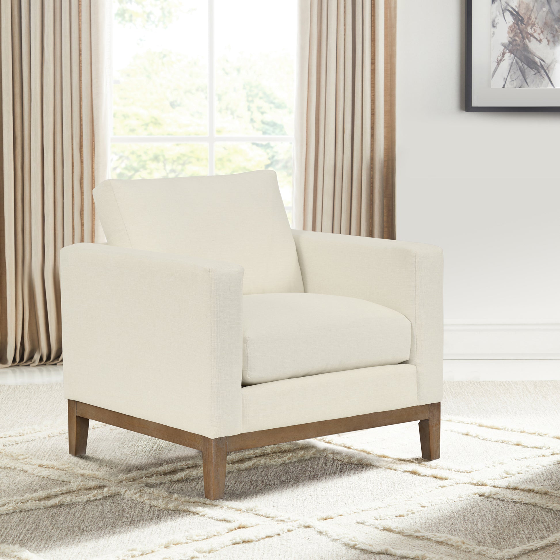 Introducing an exquisite upholstered accent chair that embodies style, comfort, and quality. This beautifully designed piece effortlessly merges timeless elegance with modern craftsmanship, making it a perfect addition to any living space. With its classic silhouette, this accent chair serves not just as a seat, but as a statement piece that enhances your decor. Its unique blend of mixed materials offers a captivating combination of natural charm and sleek sophistication, seamlessly complementing traditional, modern, or contemporary styles.