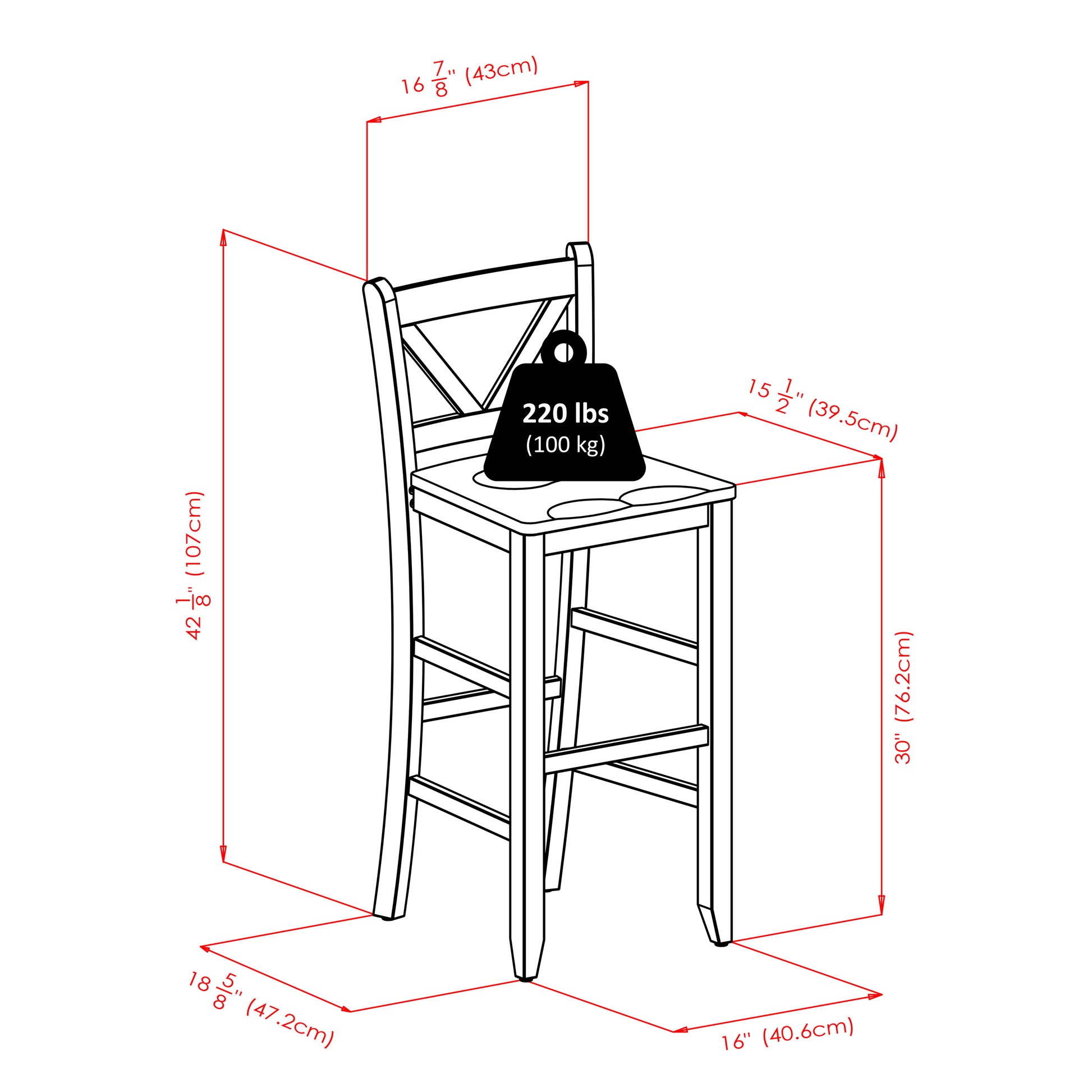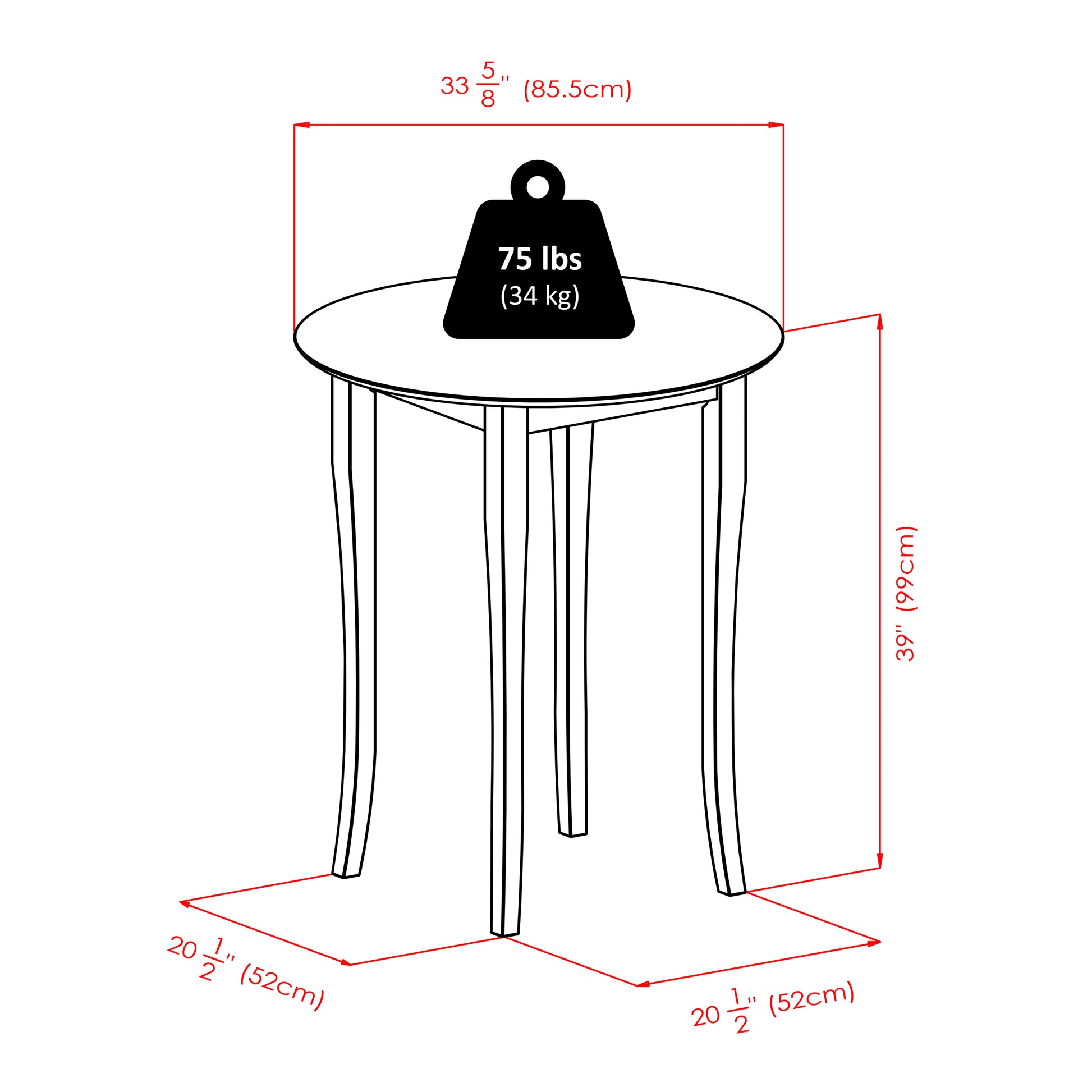 This 3-Pc Fiona Pub Table comes with a round table; an ideal size for a cozy dinner, working on your laptop or a game of cards. The table will accommodate up to four chairs. Table assembled size is 33.66"W x 33.66"D x 38.98"H. Distance between table legs is 16.14". The set comes with 2 Stools. Made from solid wood in warm walnut finish. Stools stand at 16.93"W x 19.21"D x 42.17"H with seat dimension of 16.54 to 14.26" Wide and 15.55" deep. Seat height is 30" from ground. Back rest panel is 16.93"W x 12.17" High. Assembly Required.Dimensions : 33.66 in. Wide 33.66 in. Deep 38.98 in. High