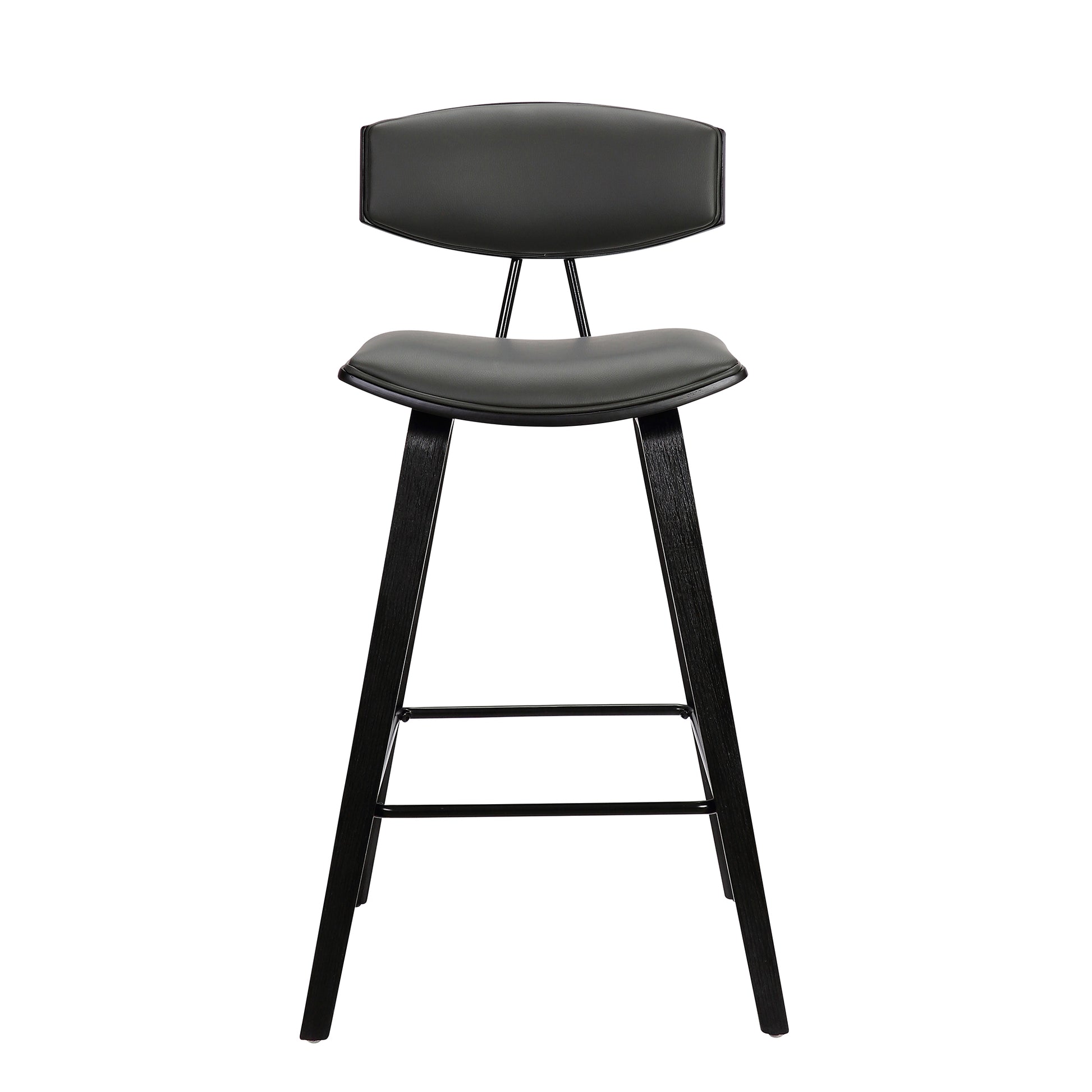 Fox Mid-Century Modern Bar Stool - Counter and Bar Height, Faux Leather and Wood
