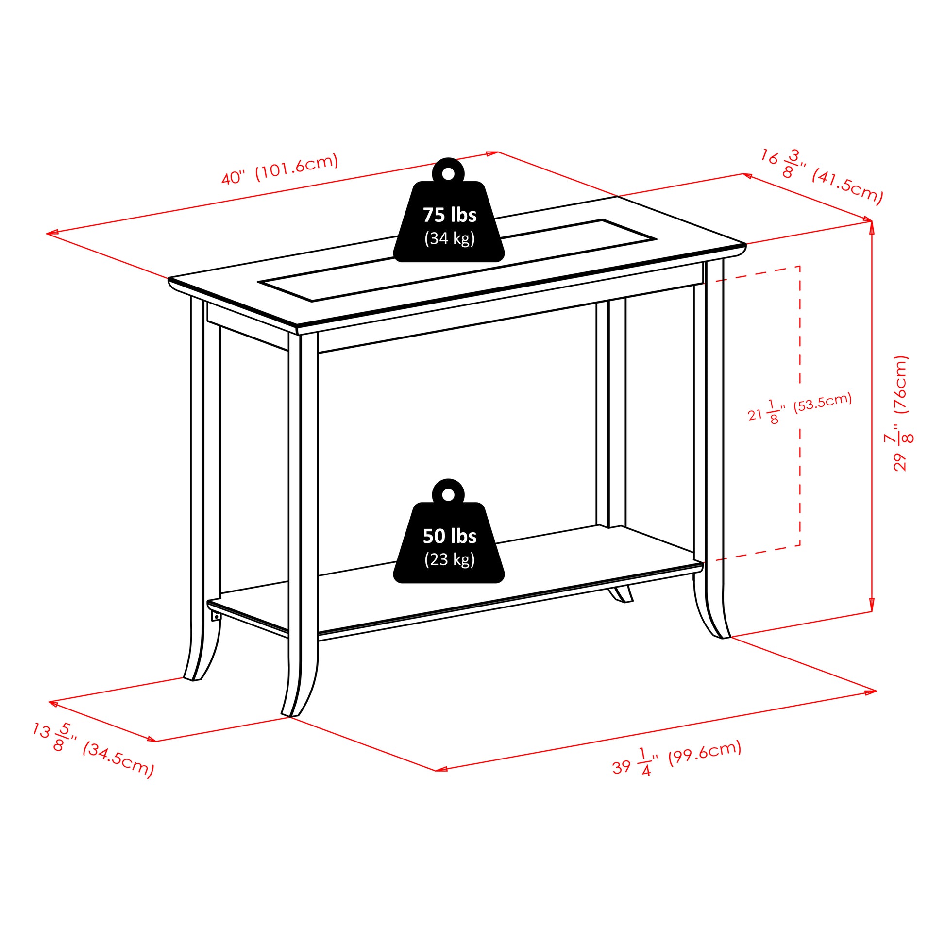 Overall size: 40"W x 16.34"D x 29.92"H