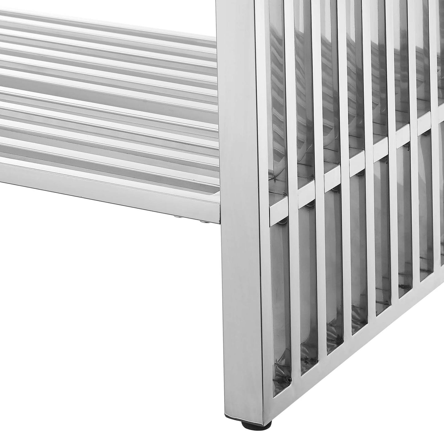 Introduce stark modernity to your bathroom space with the straight lines, polished detail, and angular profile of the Gridiron 48" Bathroom Vanity. Crafted with durable stainless steel, this open-concept vanity offers ample storage space underneath for towels, bathroom essentials, and more. This bathroom vanity features an artificial marble sink with an integrated countertop and 8" centerset faucet holes. A striking addition to the bathroom, this sink vanity rests on adjustable non-marking foot pads to protect flooring. Assembly required. Sink fixtures not included.