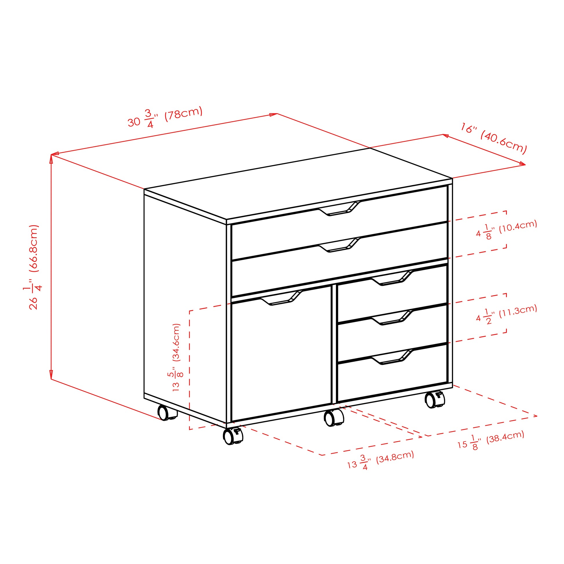 The Winsome Wood Halifax 3-Section Mobile Storage Cabinet is ideal for all of your storage needs. With its clean, simple design, you can use it anywhere. It's the perfect organizer for your knitting, sewing, or craft supplies. Rejuvenate your garage space, mud room, or shed while providing much needed space to keep tools or sports gear organized. Or use it in a walk-in closet to expand your storage for clothing, linens, handbags and other accessories. This Halifax Cabinet features five gliding drawers with cut-out handles for easy access. The large drawers have interior dimensions of 27.5"W x 11.7"D x 2.5"H, just the place for artwork, maps, or clothing items you'd prefer to store flat and lengthwise. Three smaller drawers with interior dimensions of 13.2"W x 11.7"D x 2.5"H provide additional storage space, and taller items such as boots or backpacks can be kept in the side cabinet. The unit has five wheels, two of which lock, for easy mobility as well as a way to keep it securely in place. The Cabinet is made of sturdy composite wood in a clean white finish that is sure to brighten any space. For additional storage, combine the 3-Section Cabinet with other organizers from the Winsome Halifax collection. This item conveniently ships in 1 box and is ready for assembly. Replacement part request can be submitted directly to the manufacturer within 60 days from date of purchase.