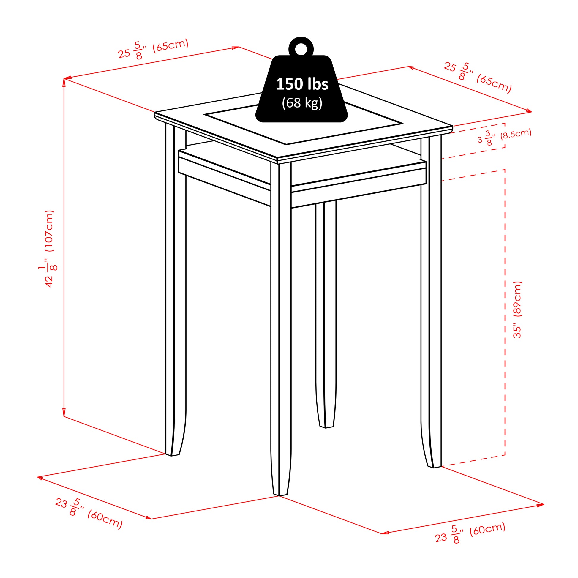 Entertain your guests around the Winsome Wood Halo 3-Pc Dining Set. A sleek pub table that provides a unique configuration as a work space or display case. The accented tempered glass provides a clear view to the shelf below. Compact yet the long, tapered legs give this table a sophisticated style making it a great addition to any area. The two comfortable ladder-back bar stools complement the table design and fit easily under the table when not in use. With a contouring back, broad seat sitting at 30.12”H and wide set legs that lend tip free support. Constructed of sturdy solid wood in a rich walnut finish that can be incorporated effortlessly. This set ships in 2 boxes, with the hardware necessary for assembly included. Replacement parts can be requested directly to the manufacturer within 60 days from date of purchase.