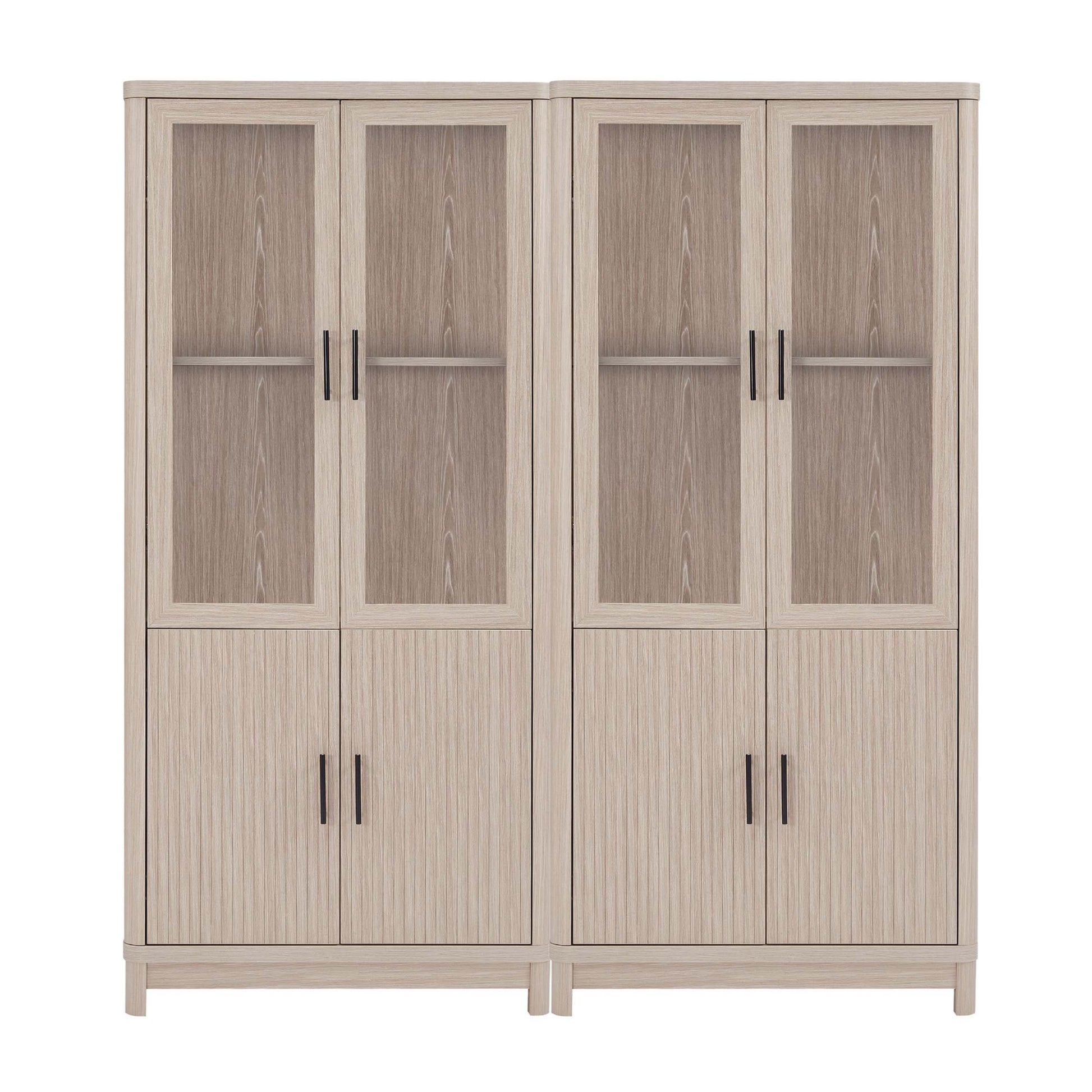 • 2 Soft Close Tempered Glass Panel Display Doors on Top and 2 Ribbed Manufactured Wood Soft Close Doors on Bottom.