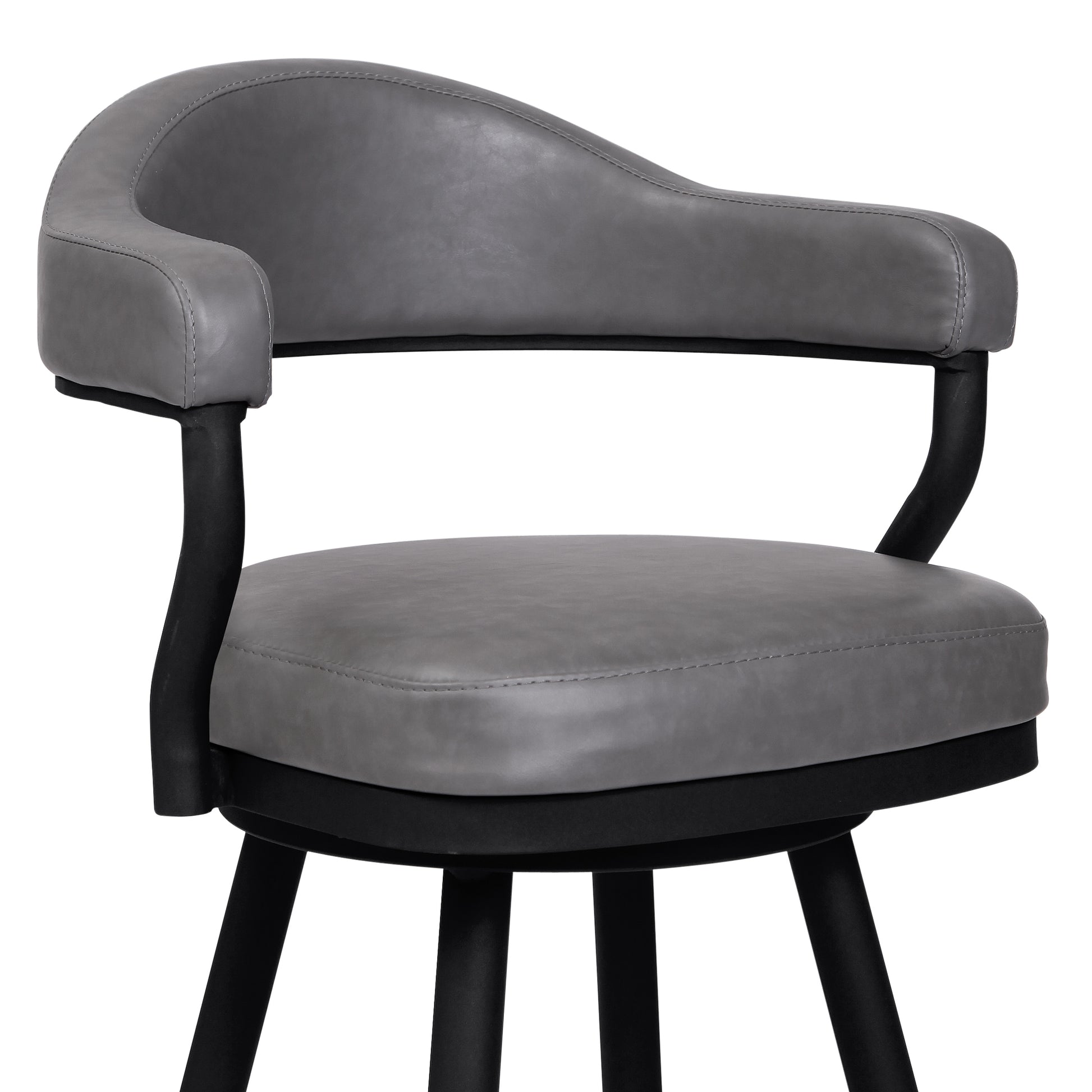 Elevate your bar seating experience with this stylish and functional swivel bar stool, designed for both comfort and aesthetic appeal. Crafted with a robust metal frame, this stool is complemented by soft faux leather upholstery that adds a touch of sophistication to any space. The open back design ensures breathable seating, making it perfect for gatherings with friends and family.