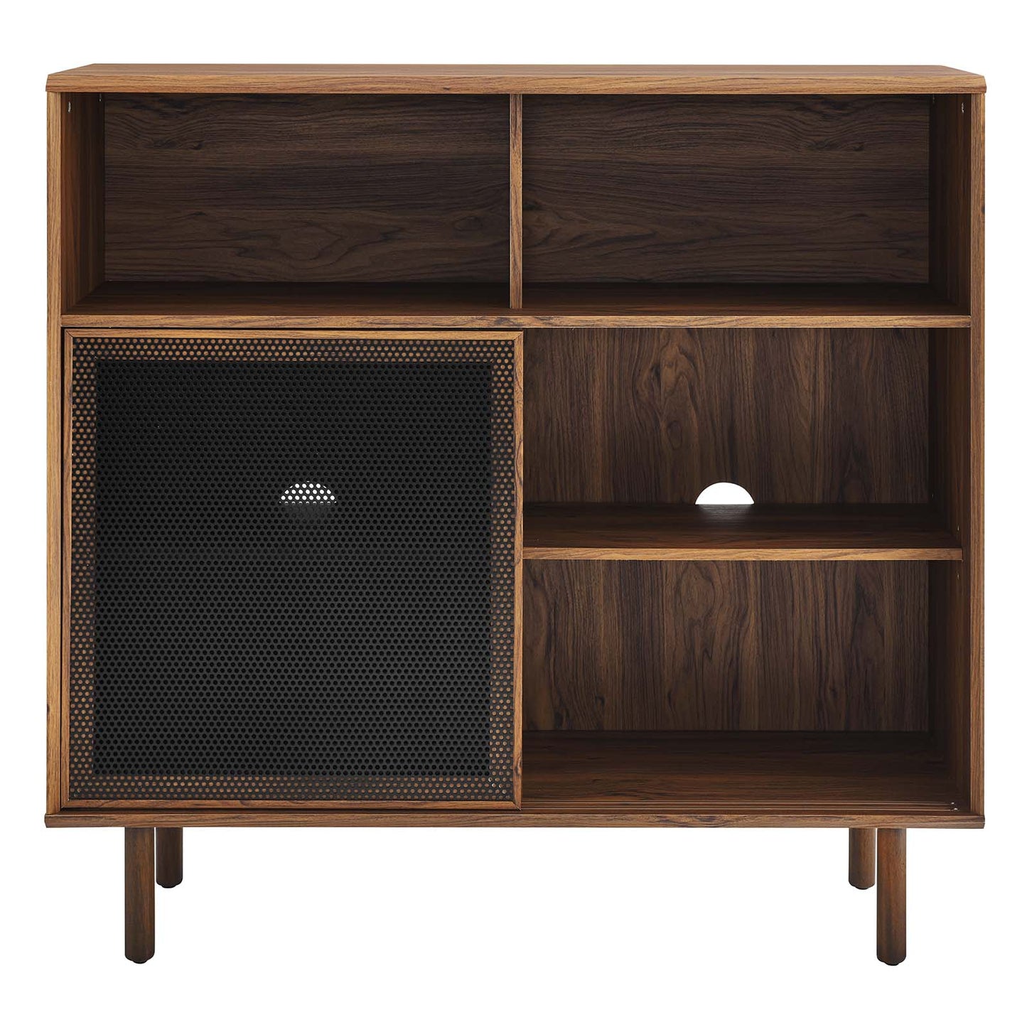 With ample storage space, this versatile cabinet is ideal for organizing media essentials, linens, décor, or anything else you wish to display. The open shelving areas, partially concealed by the sleek mesh sliding doors, offer a perfect blend of storage and showcase opportunities. Its sturdy wood legs come equipped with non-marking felt pads to protect your flooring, ensuring that style does not compromise functionality.