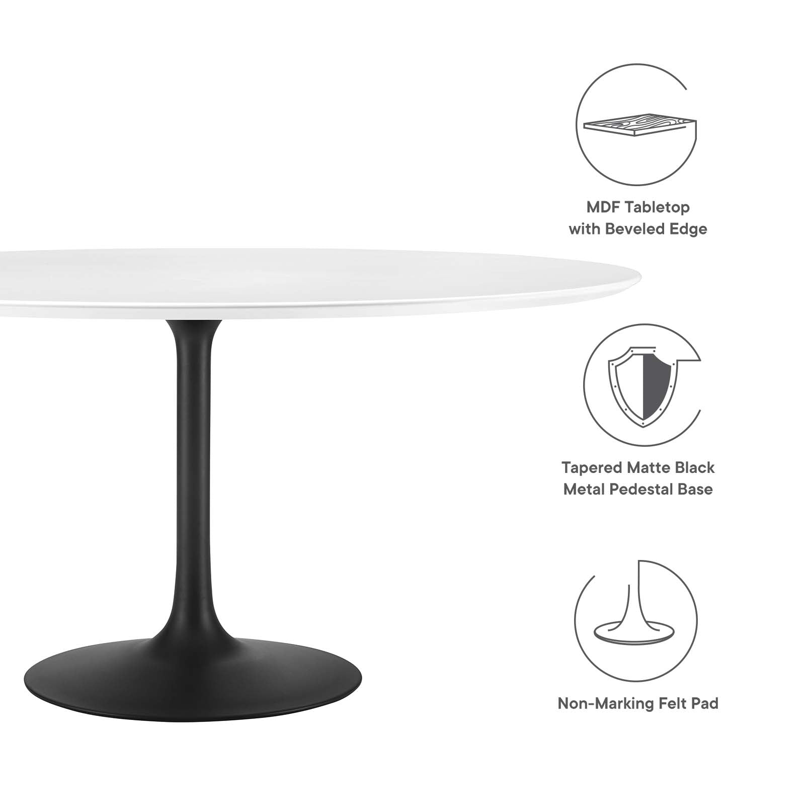 Let modern inspiration flow while gathered around this stunning round dining table, perfect for entertaining family and friends or enjoying everyday meals. Designed to comfortably seat six, this pedestal table features a beautifully crafted round tabletop made from high-quality materials, showcasing a sleek beveled edge for a contemporary yet timeless aesthetic. Embodying an iconic mid-century silhouette, the table floats on a stylish tapered metal pedestal base, which is finished with a durable, chip-resistant coating to ensure longevity and resilience.