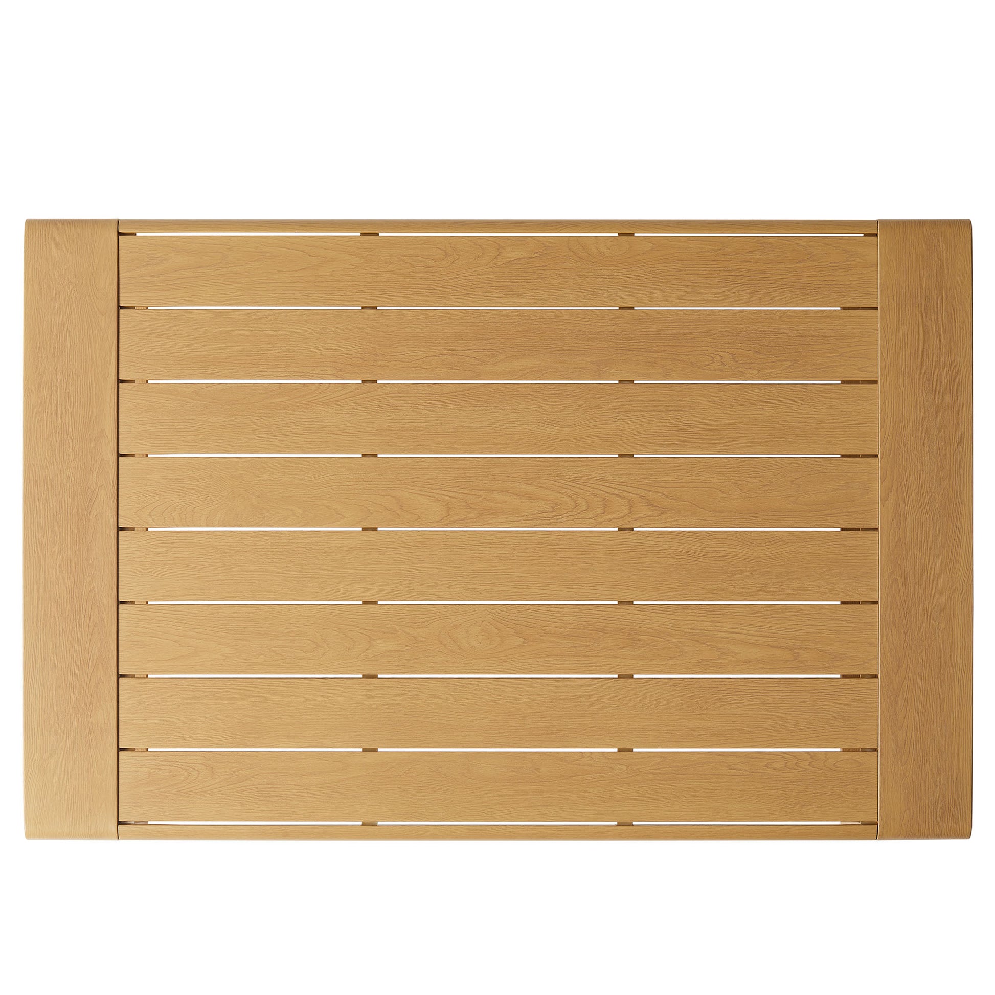 Crafted from durable, powder-coated aluminum, this all-weather coffee table delivers lasting resilience and style. The slatted table top—available with a streamlined metal finish or a realistic faux wood pattern—creates a sturdy, weather-resistant surface that allows water to drain quickly, minimizes maintenance, and stands up to the elements.
