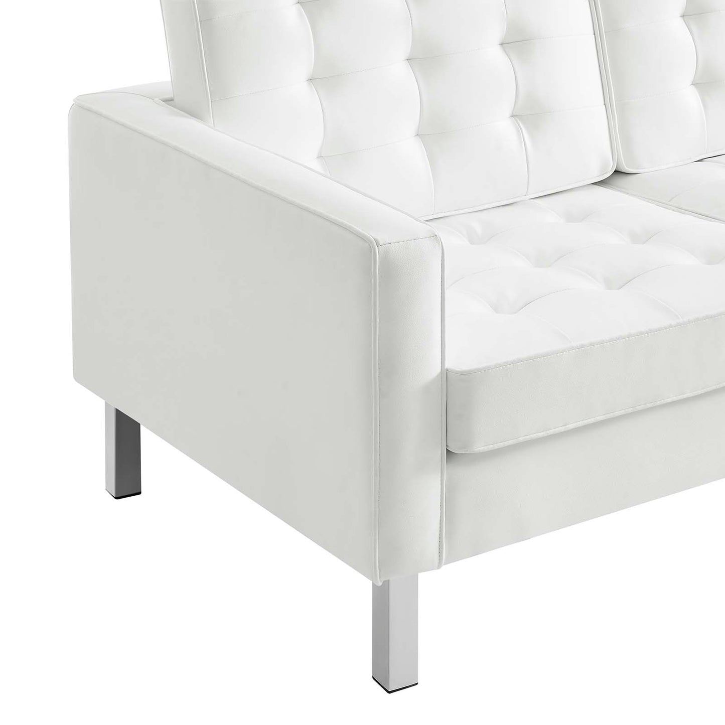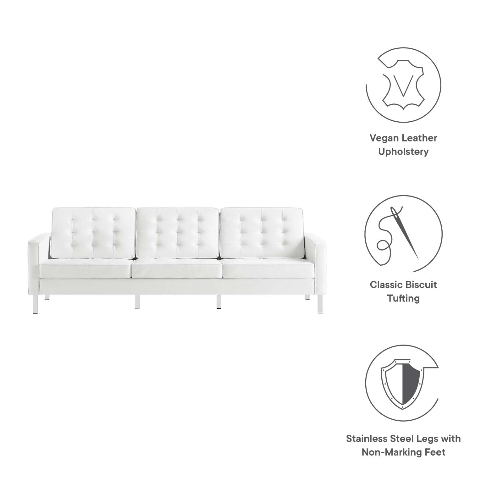 Loft Tufted Vegan Leather Sofa and Ottoman Set Silver