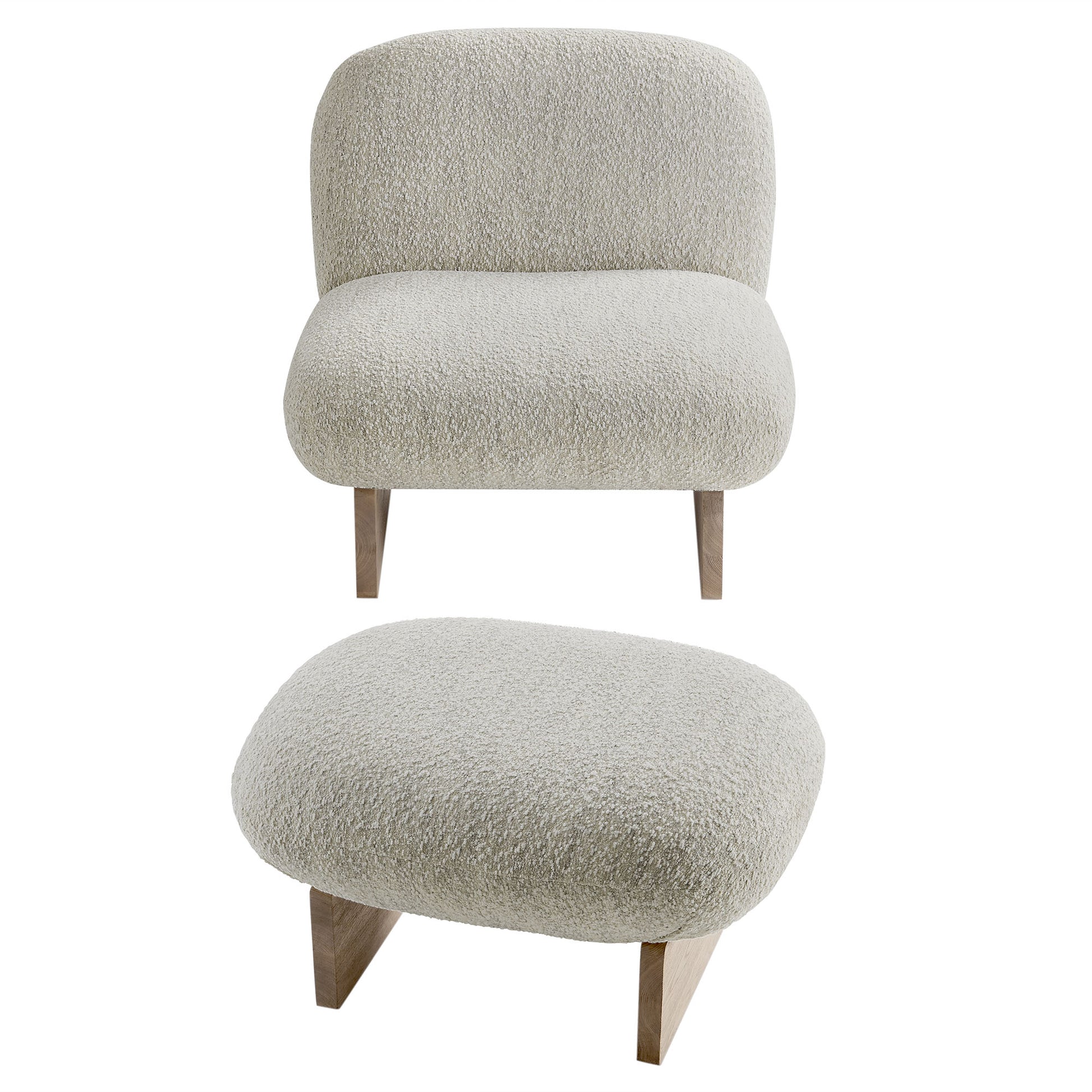 Elevate your home decor with this stunning boucle fabric accent chair and ottoman set, where style meets comfort in perfect harmony.