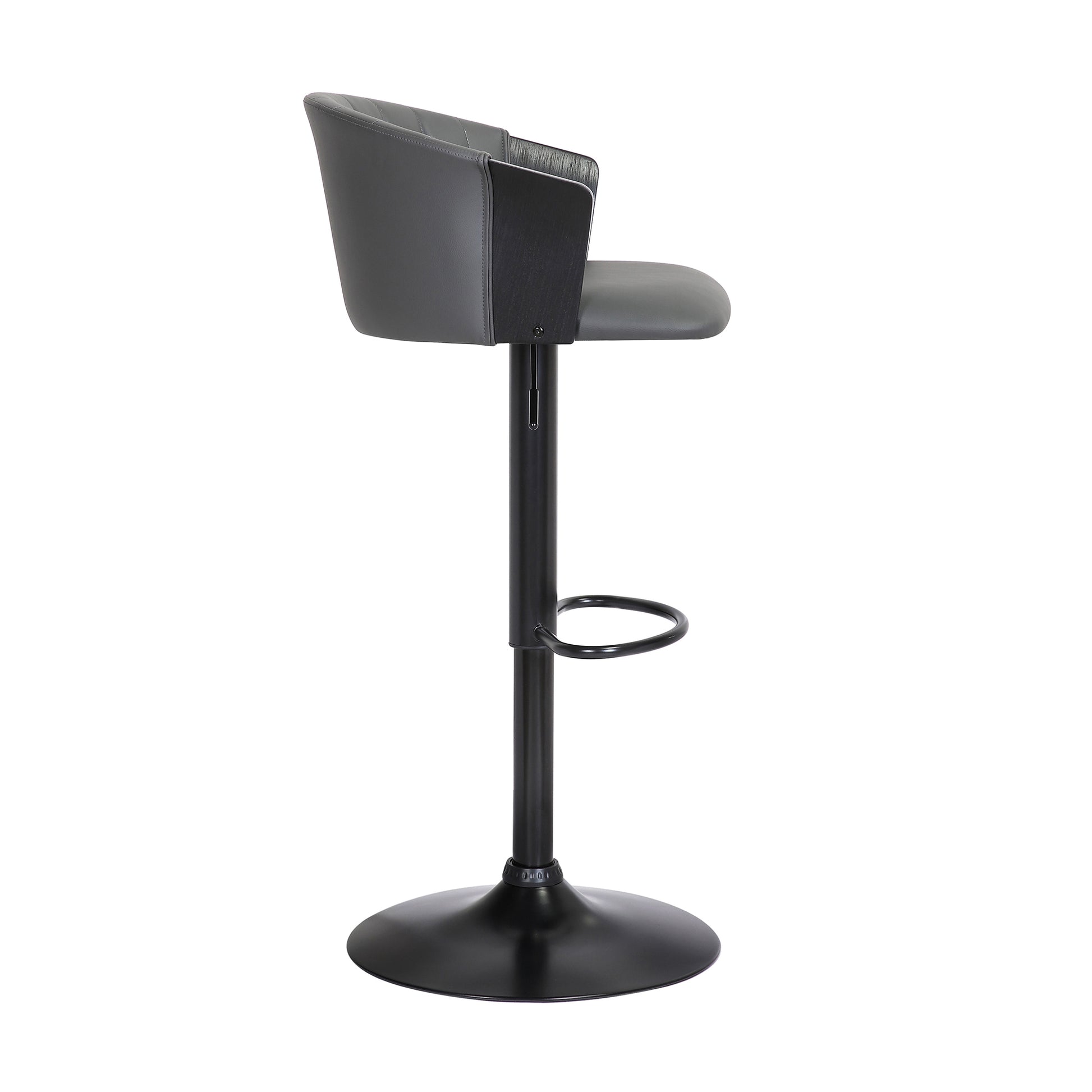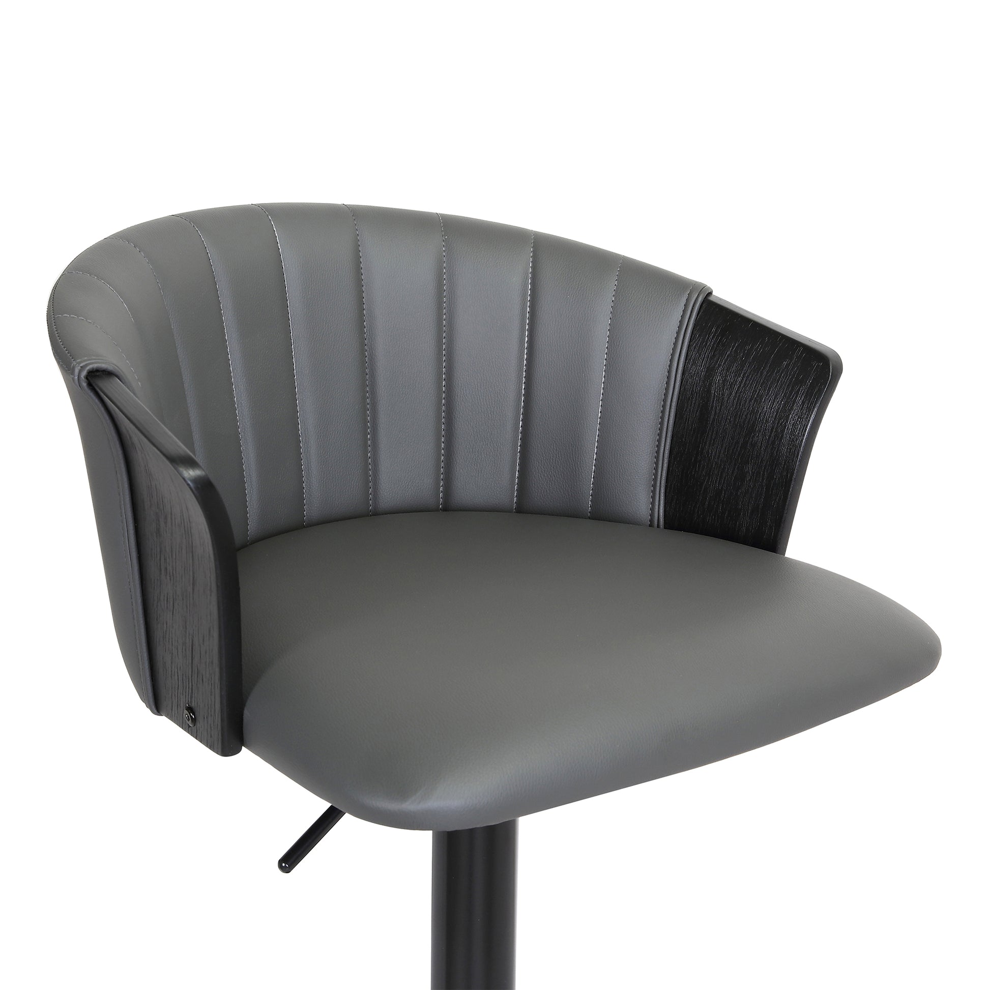 Lydia Adjustable Wood Bar Stool with Faux Leather and Black Metal