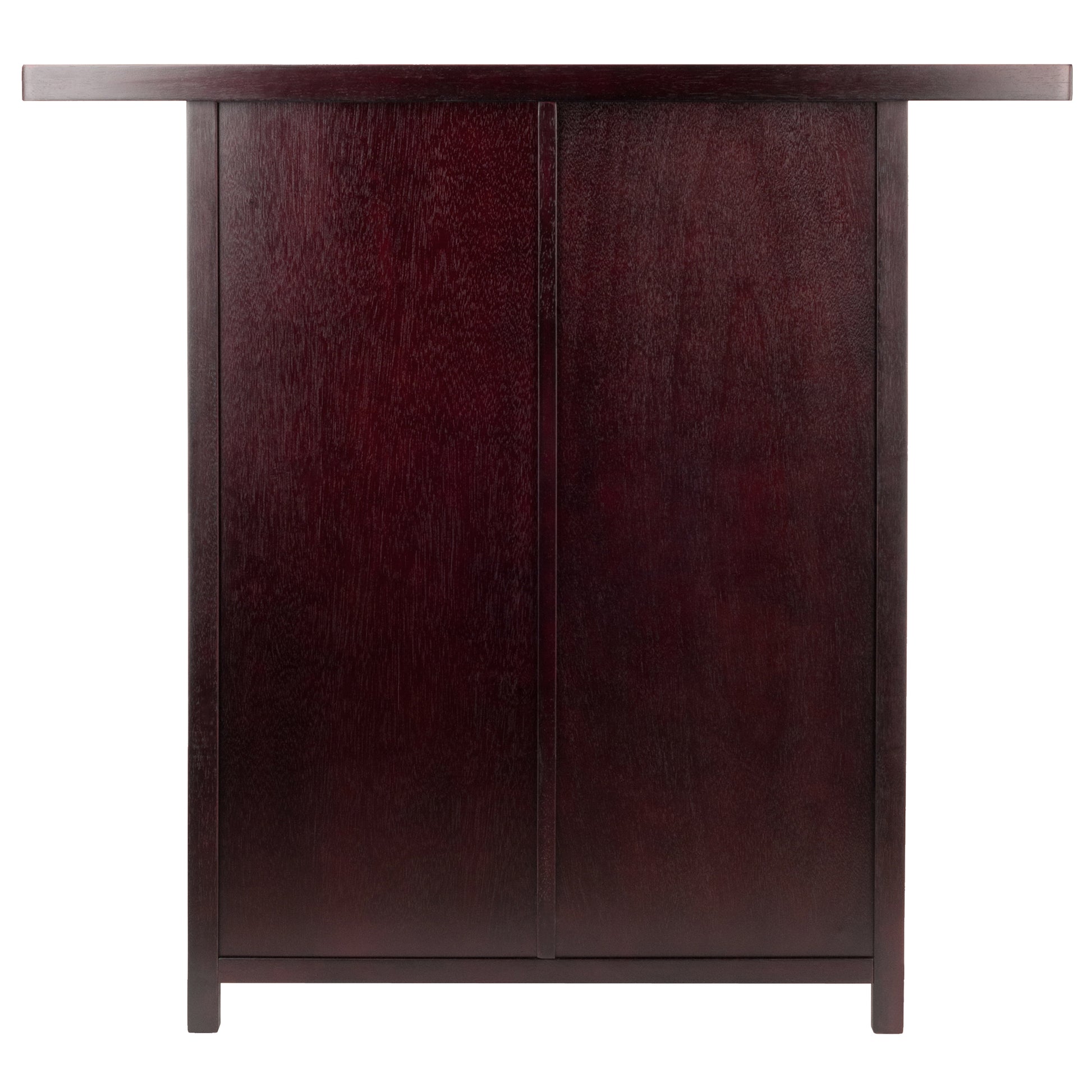 Clean lines, a sleek Espresso finish, and charming wainscoting side panels come together in the Macon Wine Bar. A natural for entertaining or just a relaxing evening at home, this versatile piece provides a wooden wine grid for up to a dozen wine bottles with room in the open shelves and cabinet for more. The wide bar tabletop is an ideal workspace for preparing drinks and serving appetizers. The uppermost open shelf has a built-in stemware holder to securely display your favorite glasses. An easy-glide drawer and lower cabinet provide plenty of room to keep bar accessories, plates, silverware and extra glassware at your fingertips. The drawer and cabinet door are finished with brushed nickel knobs. Made of Solid and Composite Wood in Espresso finish.
