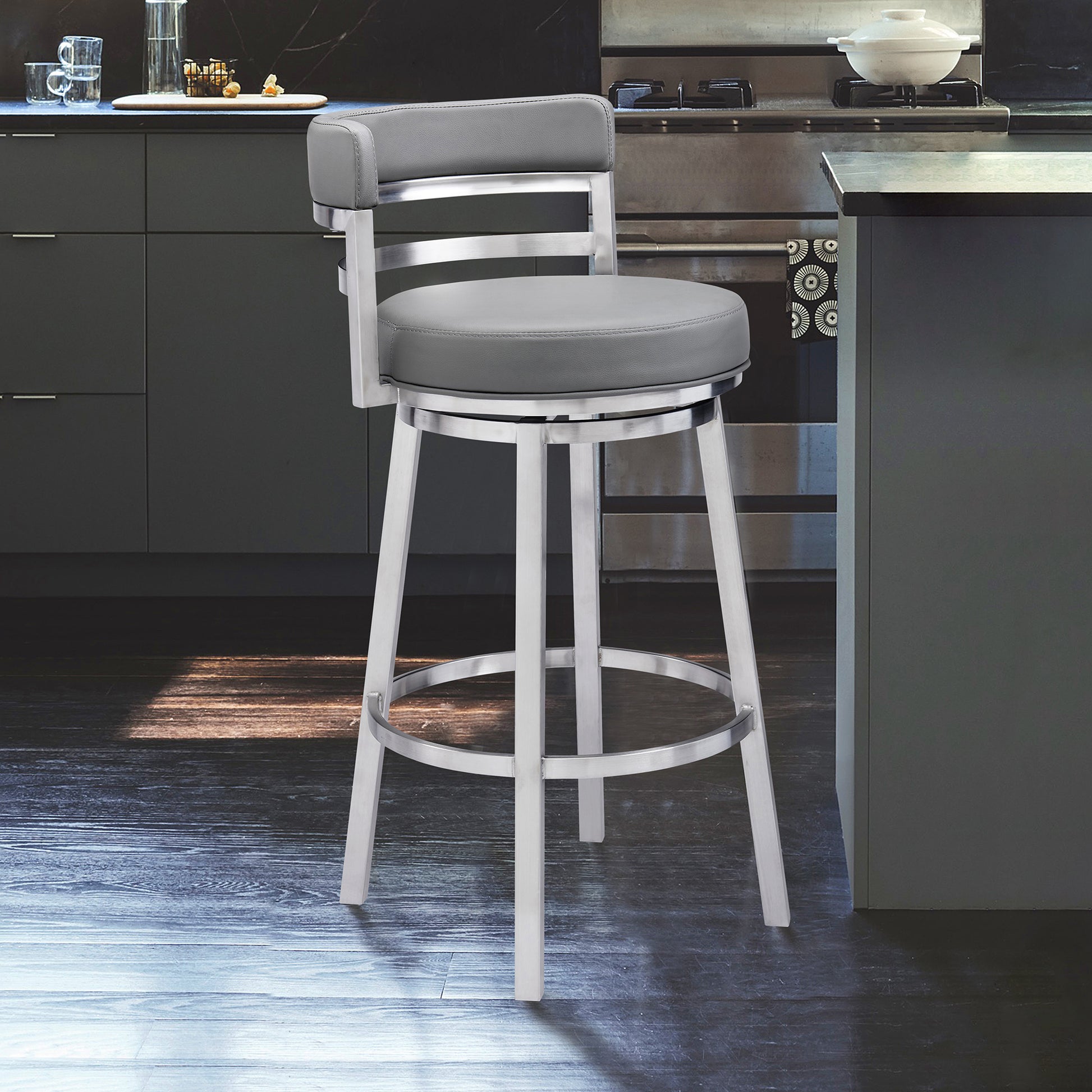 Madrid Bar and Counter Height Swivel Faux Leather and Brushed Stainless Steel Bar Stool