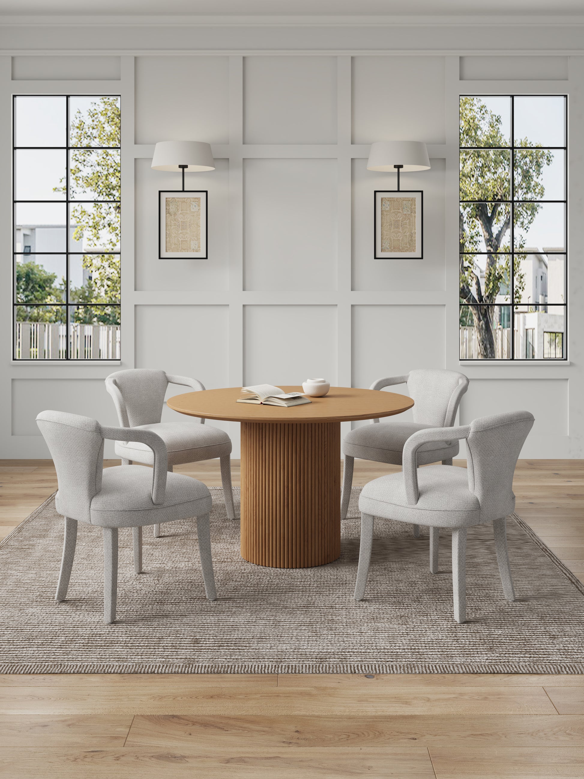 Manhattan Comfort 5-Piece Hathaway Modern 47.24 Solid Wood Round Dining Set in Natural with 4 Palmer Tweed Upholstered Dining Chairs in Silver Lining 4-DT03DC088AR-NASL