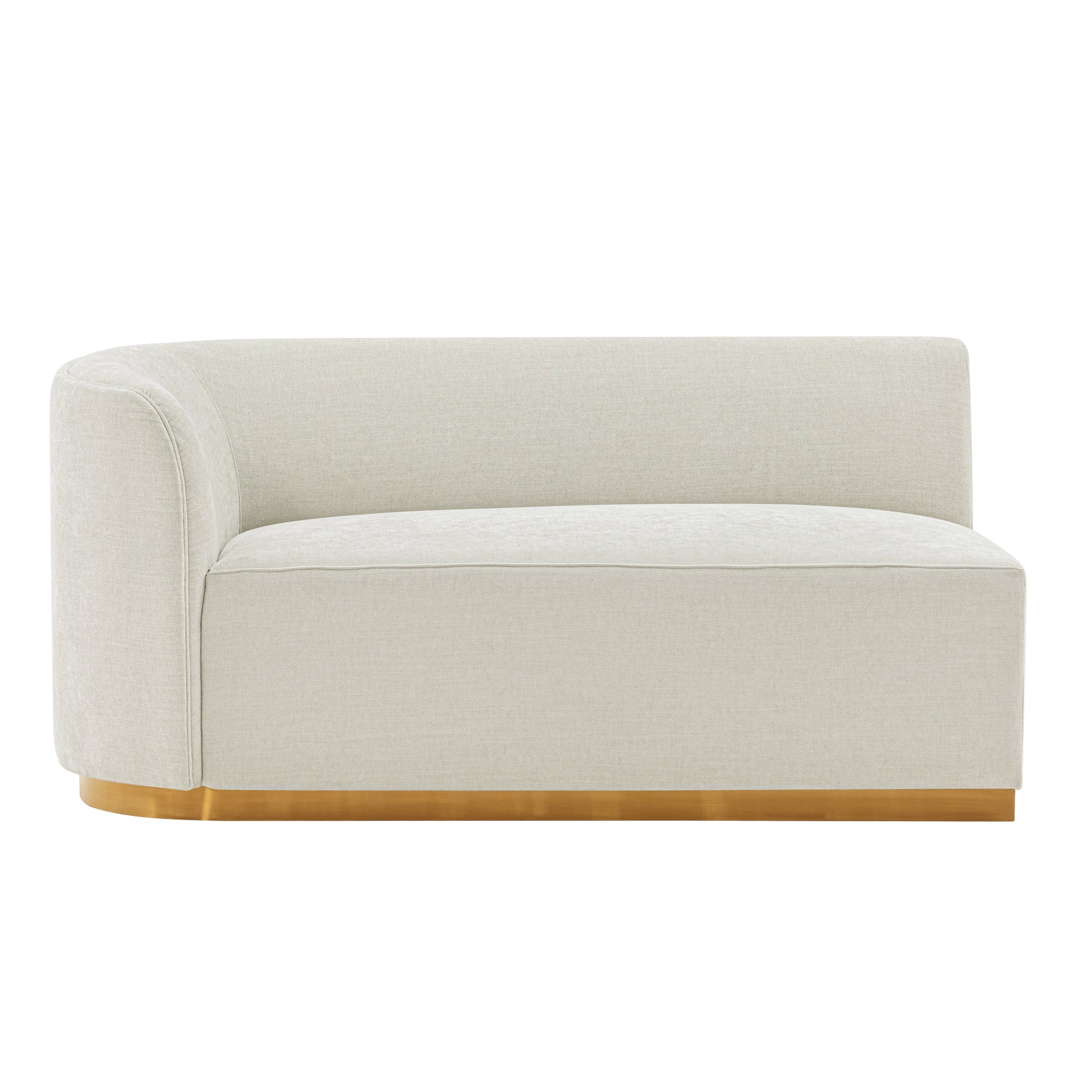 This sectional comes in two pieces and boasts a striking golden mop base for added sophistication. It includes two square accent pillows to enhance its aesthetic appeal. With an inner seat depth of 22.83 inches and varying seat widths, it's perfect for relaxation and versatile seating arrangements.