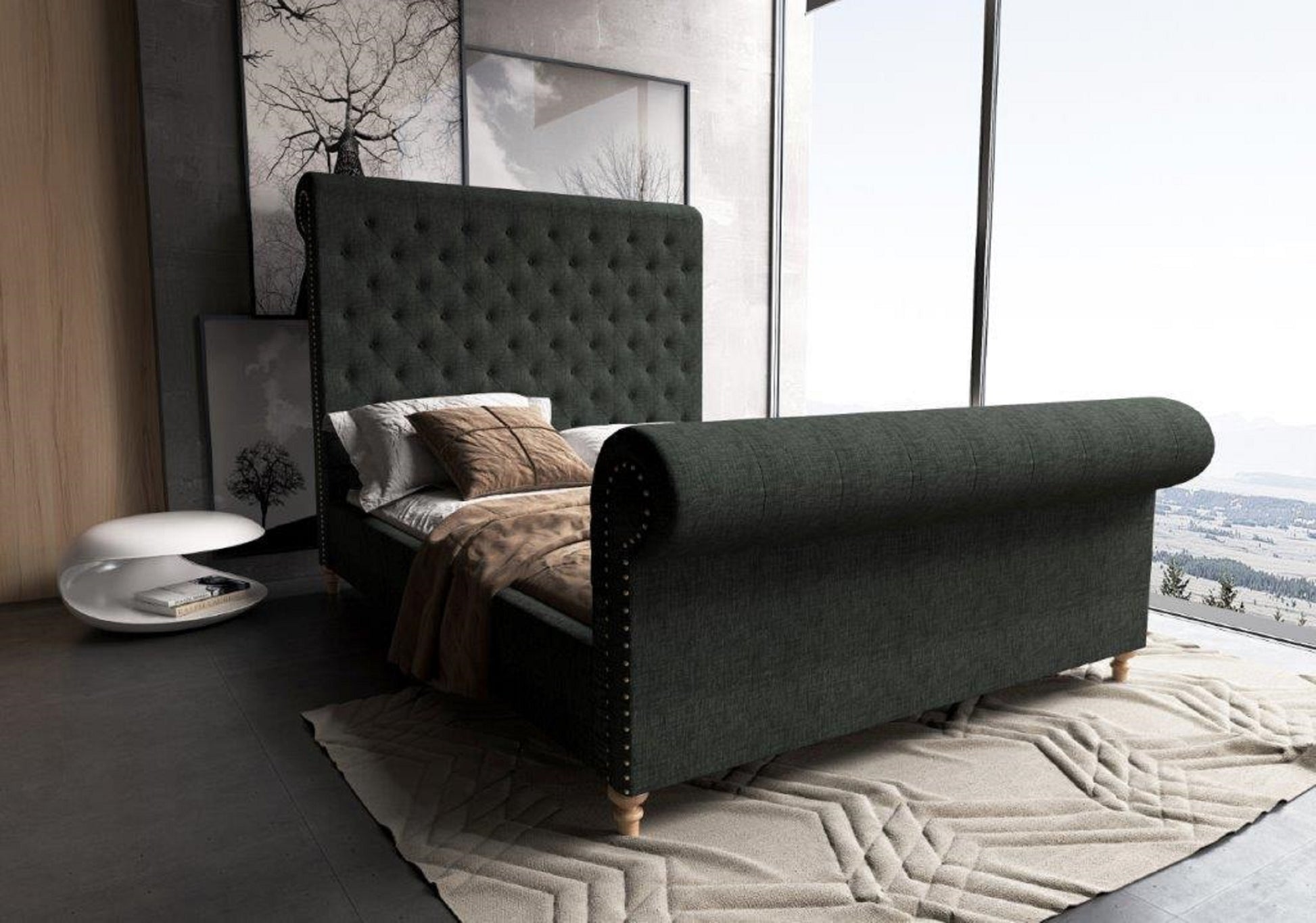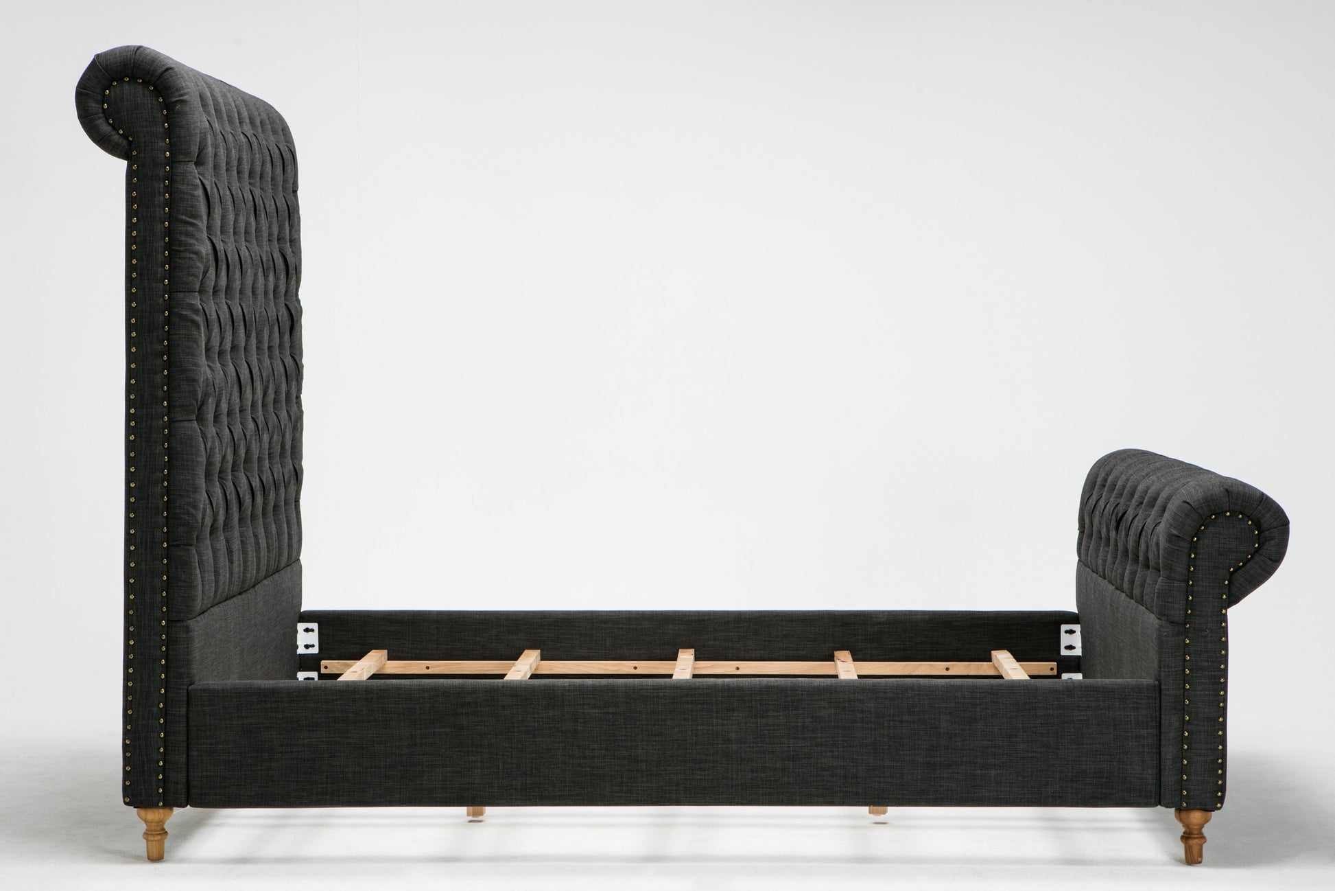 Featuring an ultra-high headboard and gracefully rolled edges, this bed creates a dramatic profile that invites you to sink into its cozy embrace at the end of a long day. The thoughtful design not only enhances your sleeping experience but also elevates the overall aesthetic of your room. Pair it with complementary pieces like the Chateau Modern Tufted Sofa or Loveseat for a cohesive look that radiates comfort and style.