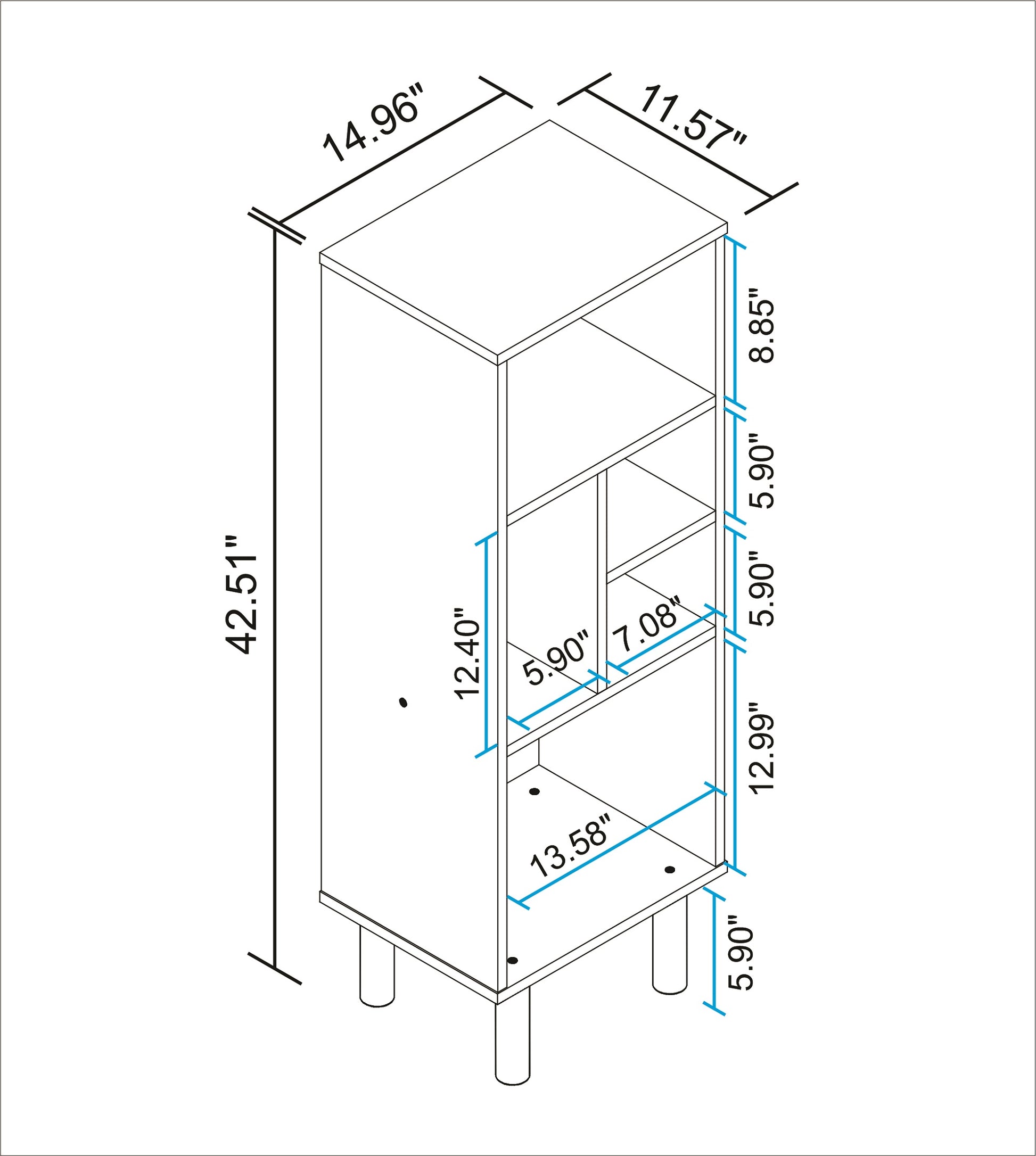 Read: style and class. We've got you covered. The Essex Mid-Century Modern bookshelf adds style and flair to your space with unique visual interest and open shelving to showcase your favorite decorative items and books in one artful display. Prop up framed photos, add travel trinkets, and cherished books to make it your own. Entertain friends and family in style with a little touch of sophistication. Adulting and creating your own space has never been easier. Dimensions: 14.96 in. Length, 42.51 in. Height, 11.57 in. Depth.