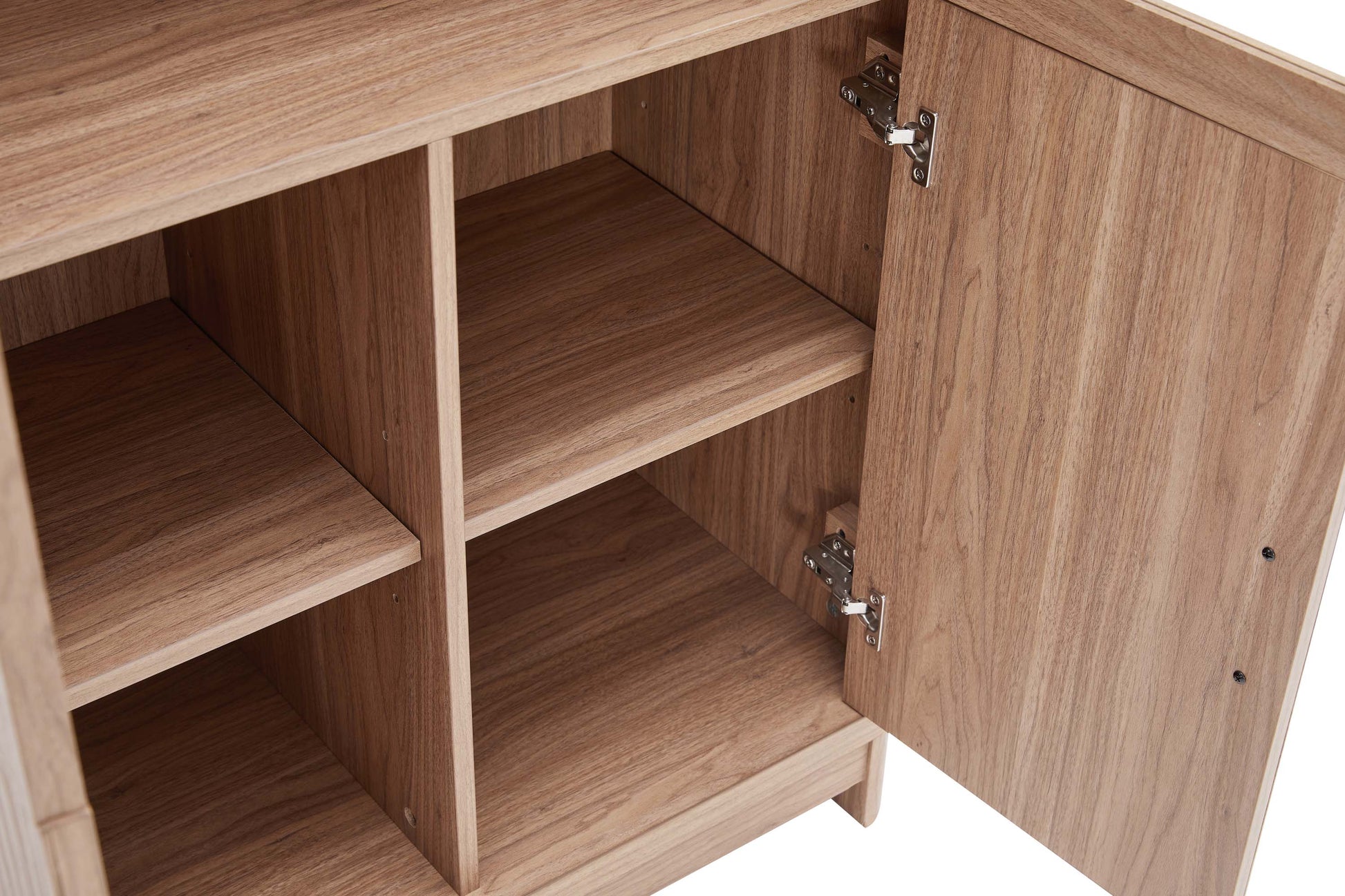 Introducing the Jodie Collection, a stunning new addition to the realm of Mid-Century Modern design. Crafted from premium manufactured wood, each piece in this collection showcases exquisite wood ribbed drawers and doors, adding a textured sophistication to your living space. The sleek black metal handles complement the splayed metal legs, creating a harmonious blend of elegance and contemporary flair. The Jodie Collection redefines style and function, offering timeless pieces that seamlessly enhance your home’s decor with a touch of modern nostalgia. Dimensions: 31 in. Length, 67.6 in. Height, 15.7 in. Depth.