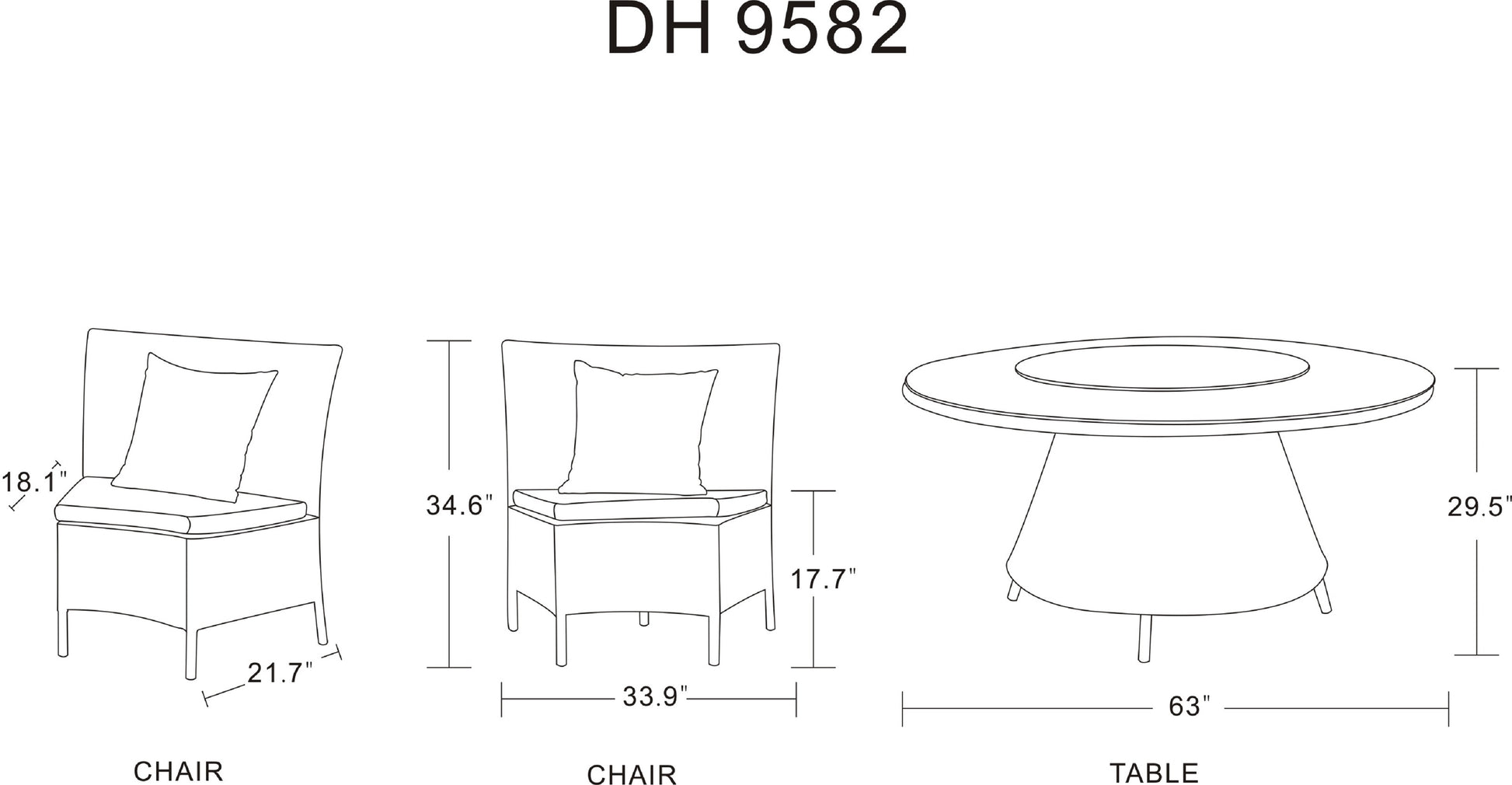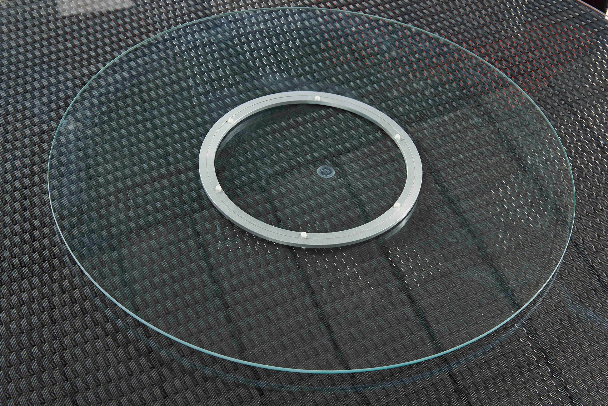 Food is always more fun outside. Intelligent design meets casual style in this fresh, inviting outdoor dining set. Boasting a clean and compact appeal, the six wedge-shaped sectional chairs can be tucked in to form a seamless ring around the central table. Cozy accent pillows and brightly colored cushions add a festive pop of color. Perfect for sharing a meal with friends and family, the table top is finished with a chic glass lazy Susan in the center, making it easy to eat, drink, and laugh the night away. Dimensions: 63 in. Length, 34.6 in. Height, 63 in. Depth.