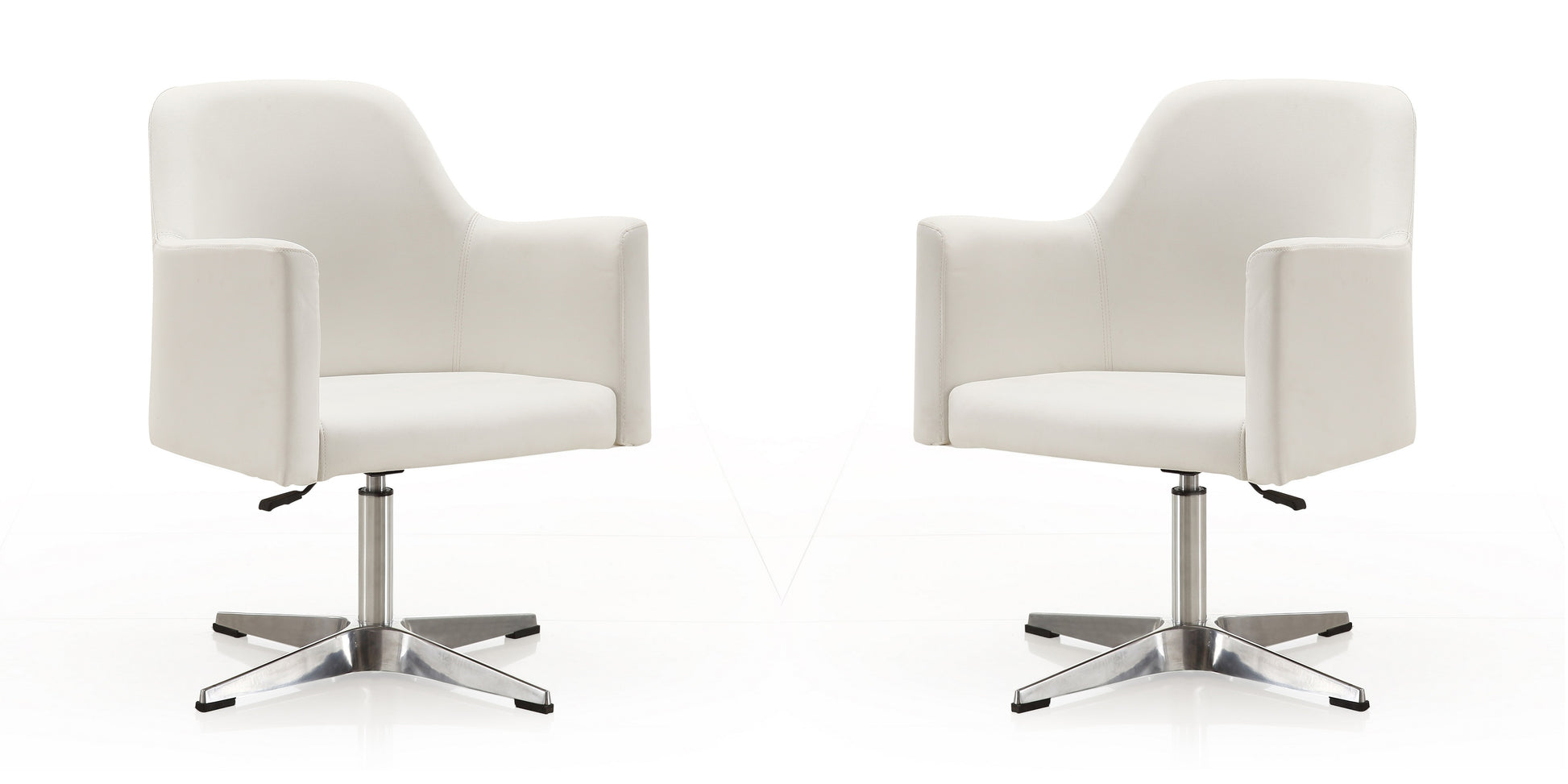 Manhattan Comfort Pelo White and Polished Chrome Faux Leather Adjustable Height Swivel Accent Chair (Set of 2) 2-AC030-WH