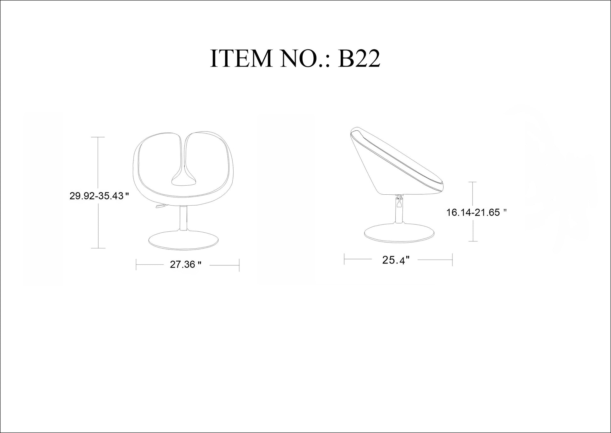 Boldly upgrade your decor with this striking artistic chair. Boasting vivid colors that emphasize its bold graphic appeal, the curiously curved design is fascinating and irresistible to sit in. Its seat is fully upholstered, unexpectedly comfortable, and ergonomically designed for good posture. With convenient adjustable height and 360 degree swivel capabilities, it’s a totally versatile statement piece for both living spaces and home offices. Dimensions: 27.36 in. Length, 29.92-35.43 in. Height, 25.4 in. Depth.