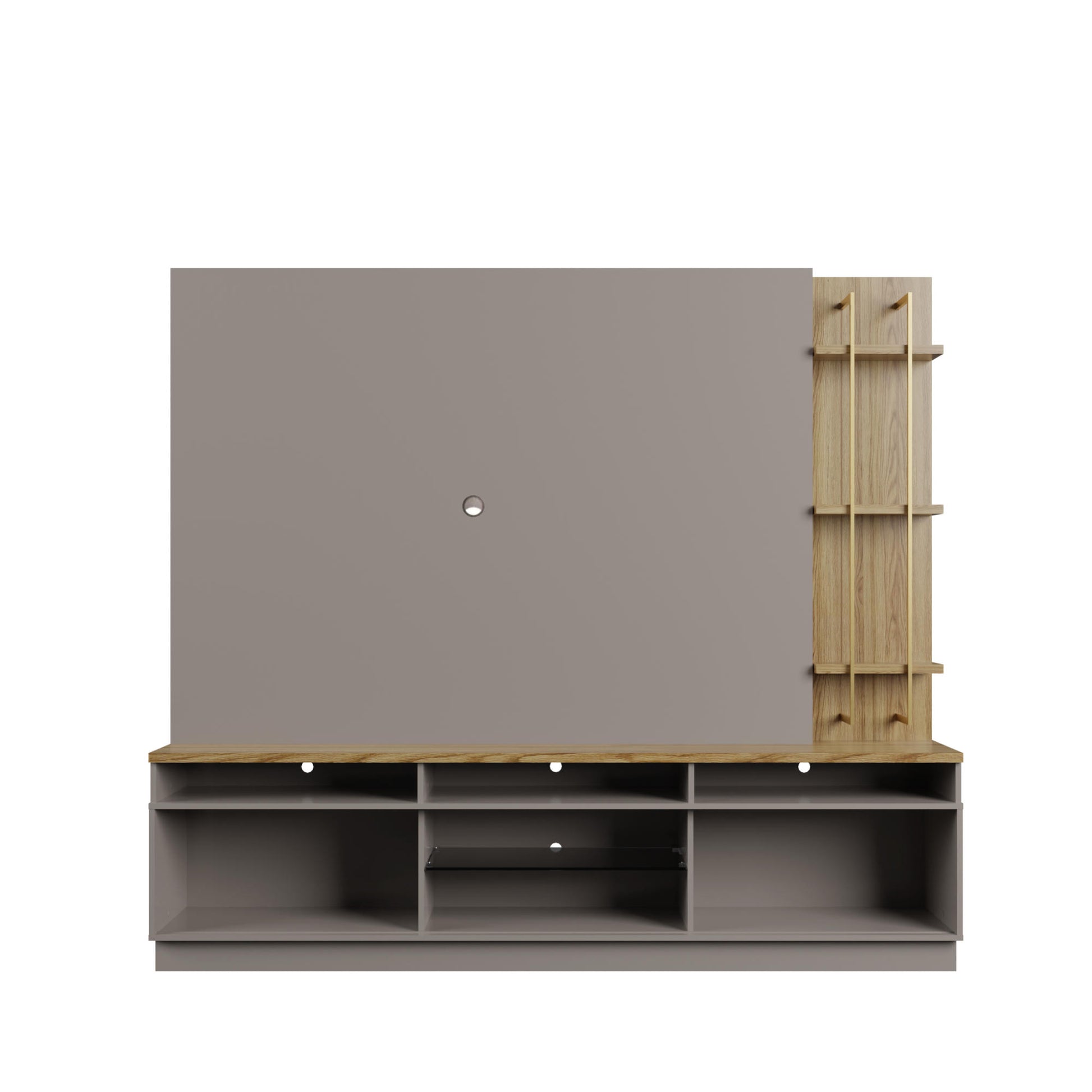 Manhattan Comfort Pomander 85.27" Free Standing Entertainment Center with Décor Shelves in Grey Gloss 402351
