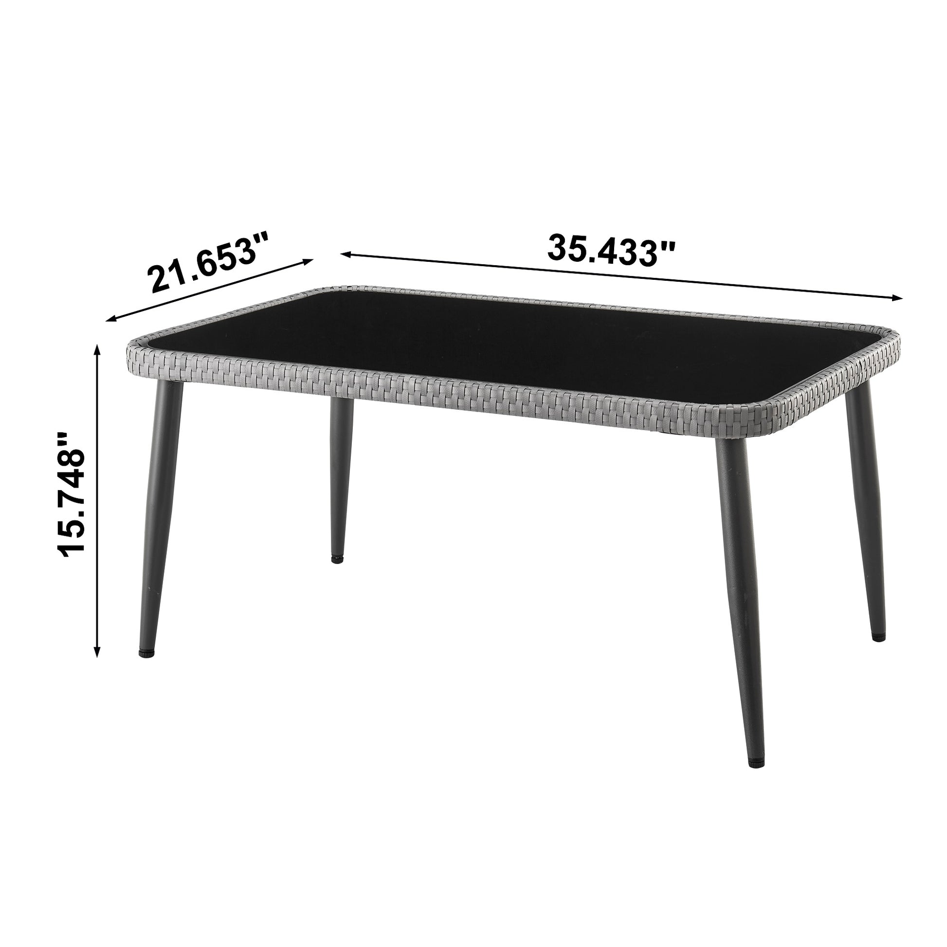 Calling all outdoor entertainer lovers, come out to the backyard to relax in style and comfort. The Portofino set is practical extra seating, extra cozy, and extra chic with boho-feels, crafted from durable rattan and iron frame to ensure long-lasting memories are created in style. Mix it up or feature the set in its own area out back for maximum coziness and perfect fireside intimate gatherings. The coffee table is protected by tempered glass making it easy and safe to serve up all of your favorite snacks. Let's go plan that outdoor party. Dimensions: 140 in. Length, 29.53 in. Height, 27.95 in. Depth.