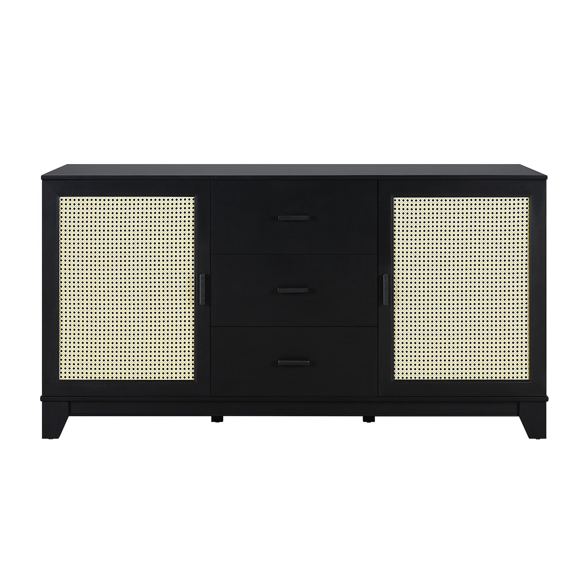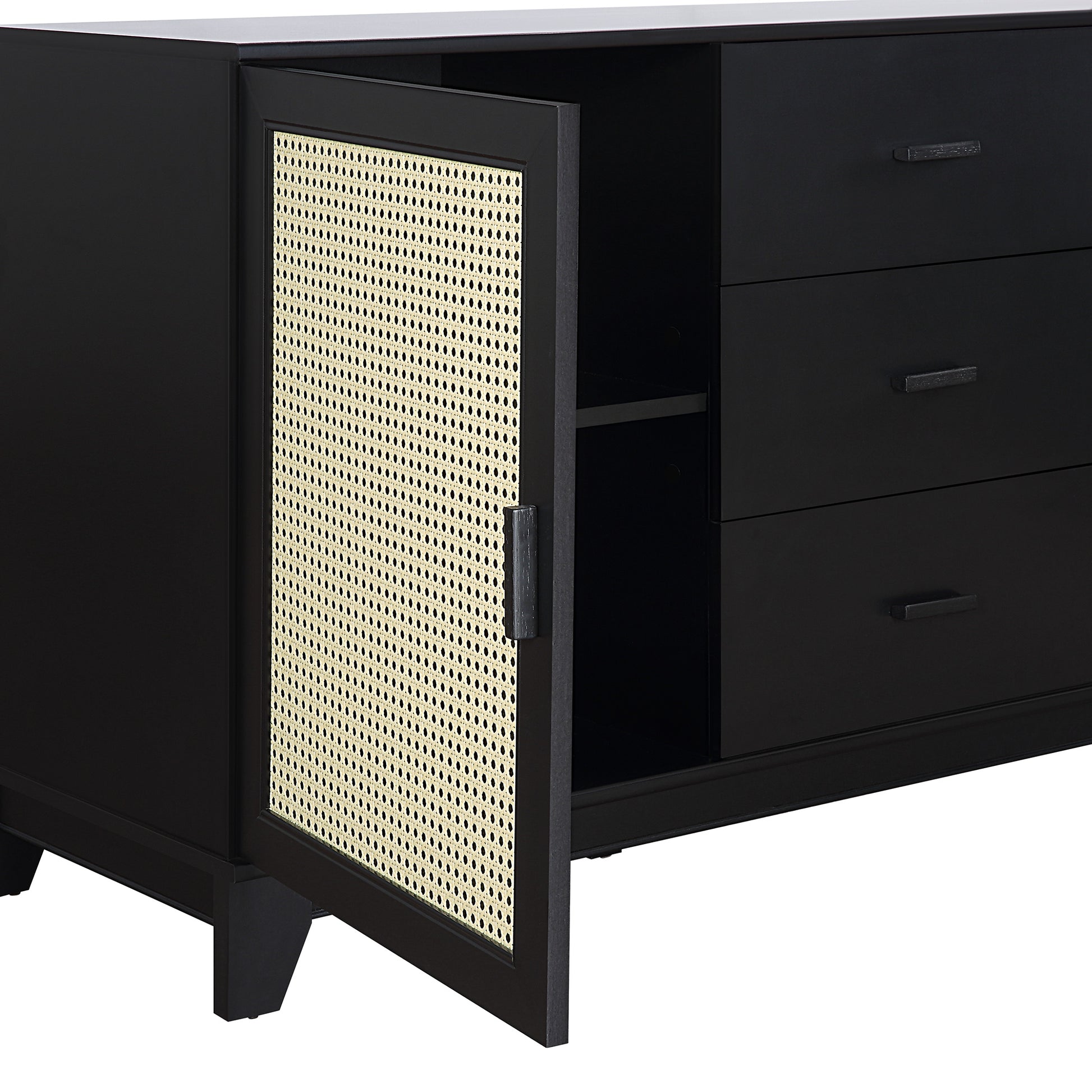 Manhattan Comfort Sheridan 59.05 Modern Cane Sideboard with Adjustable Shelves in Black SB-4GLF-BK