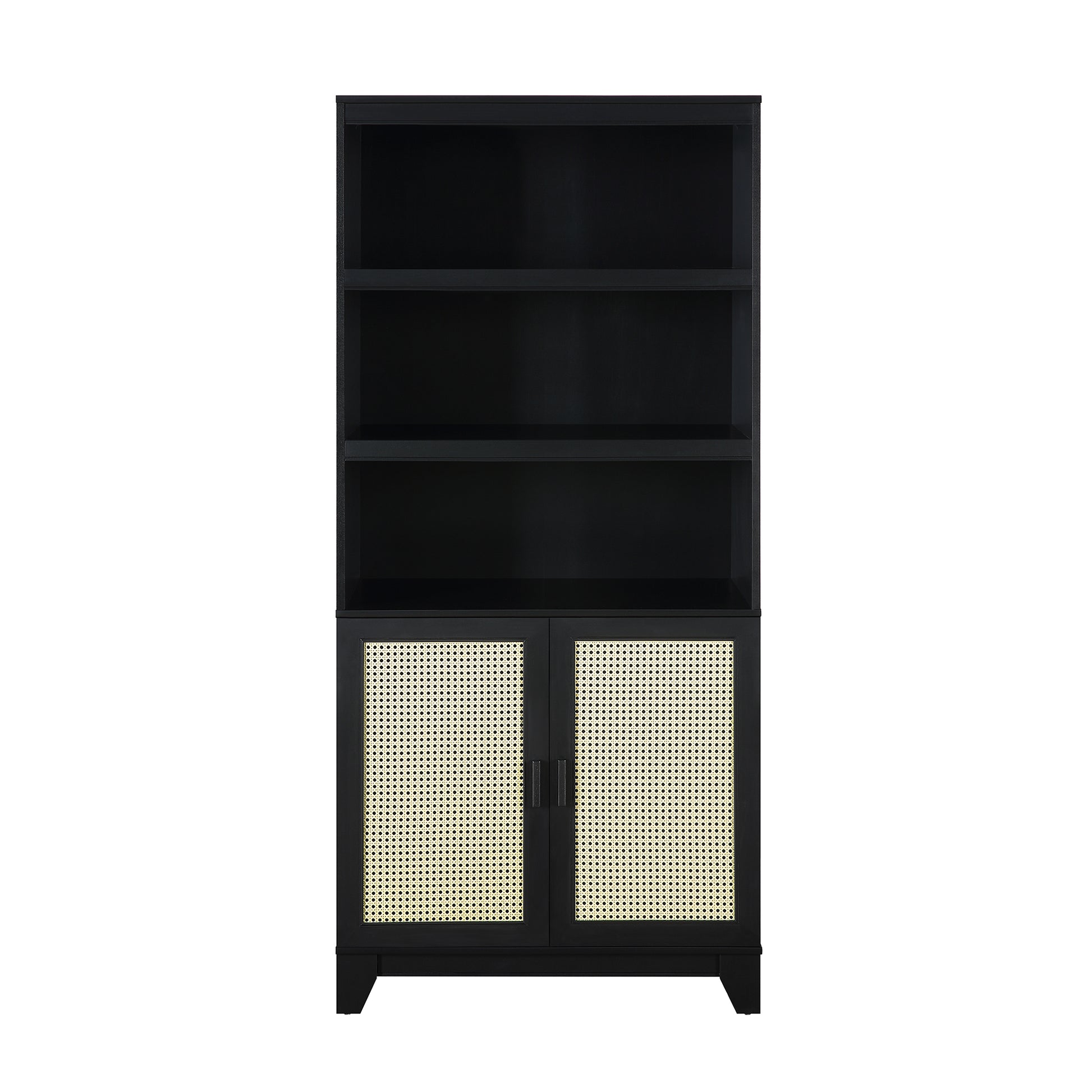Manhattan Comfort Sheridan Modern Cane Bookcase with Adjustable Shelves in Black BC-6GLF-BK