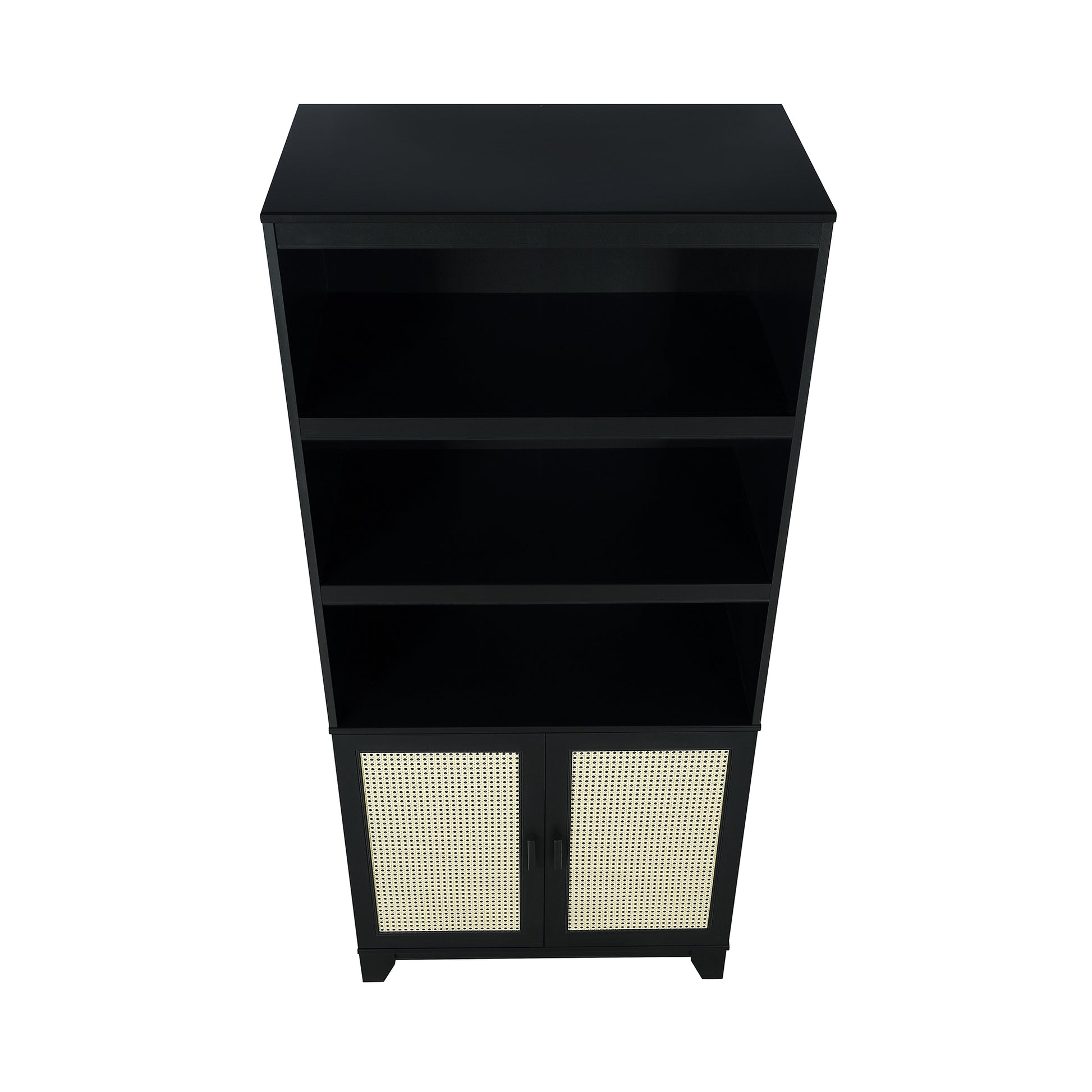 Manhattan Comfort Sheridan Modern Cane Bookcase with Adjustable Shelves in Black - Set of 2 2-BC-6GLF-BK