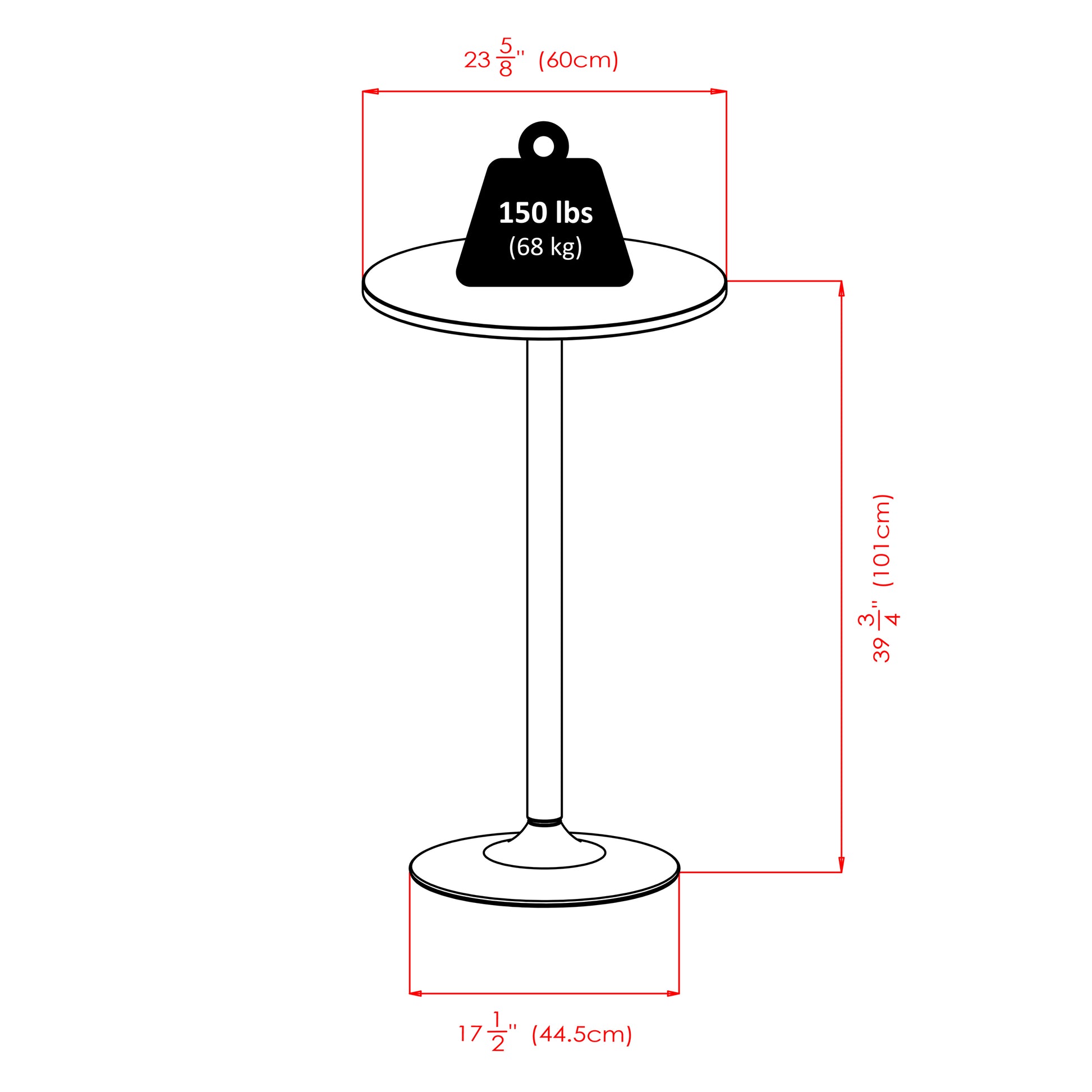Obsidian 3-pc Counter Table Set comes with sleek and stylish all black Counter Height Table and two ready to assemble 29" black square-leg stools. The round table top is black veneer on composite wood and the metal base has a black coating. Table size 23.6" in diameter and 39.75" high. Easy Assembly. Each Stool is 13.58W x 13.58"D x 28.98"HDimensions : 23.62 in. Wide 23.62 in. Deep 39.76 in. High