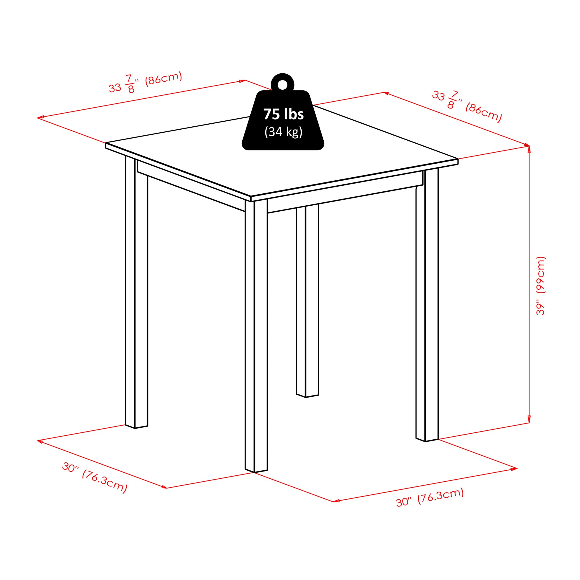 Add a time-honored design to add to your living space with the Winsome Wood Parkland 3-Pc Dining set. It provides a comfortable place to eat meals, work on a laptop and more. A classic design, clean and simple look that will work beautifully with a variety of home decors. This compact set will look great in the kitchen or small dining area. It also makes a good surface for engaging in card games, working on puzzles or other hobbies and activities. The two comfortable ladder-back bar stools complement the table design and fit easily under the table when not in use. With a contouring back, broad seat sitting at 30.12”H and wide set legs that lend tip free support. Constructed of sturdy solid wood in a rich walnut finish that can be incorporated effortlessly. This set ships in 2 boxes, with the hardware necessary for assembly included. Replacement parts can be requested directly to the manufacturer within 60 days from date of purchase.Dimensions : 33.86 in. Wide 33.86 in. Deep 38.98 in. High