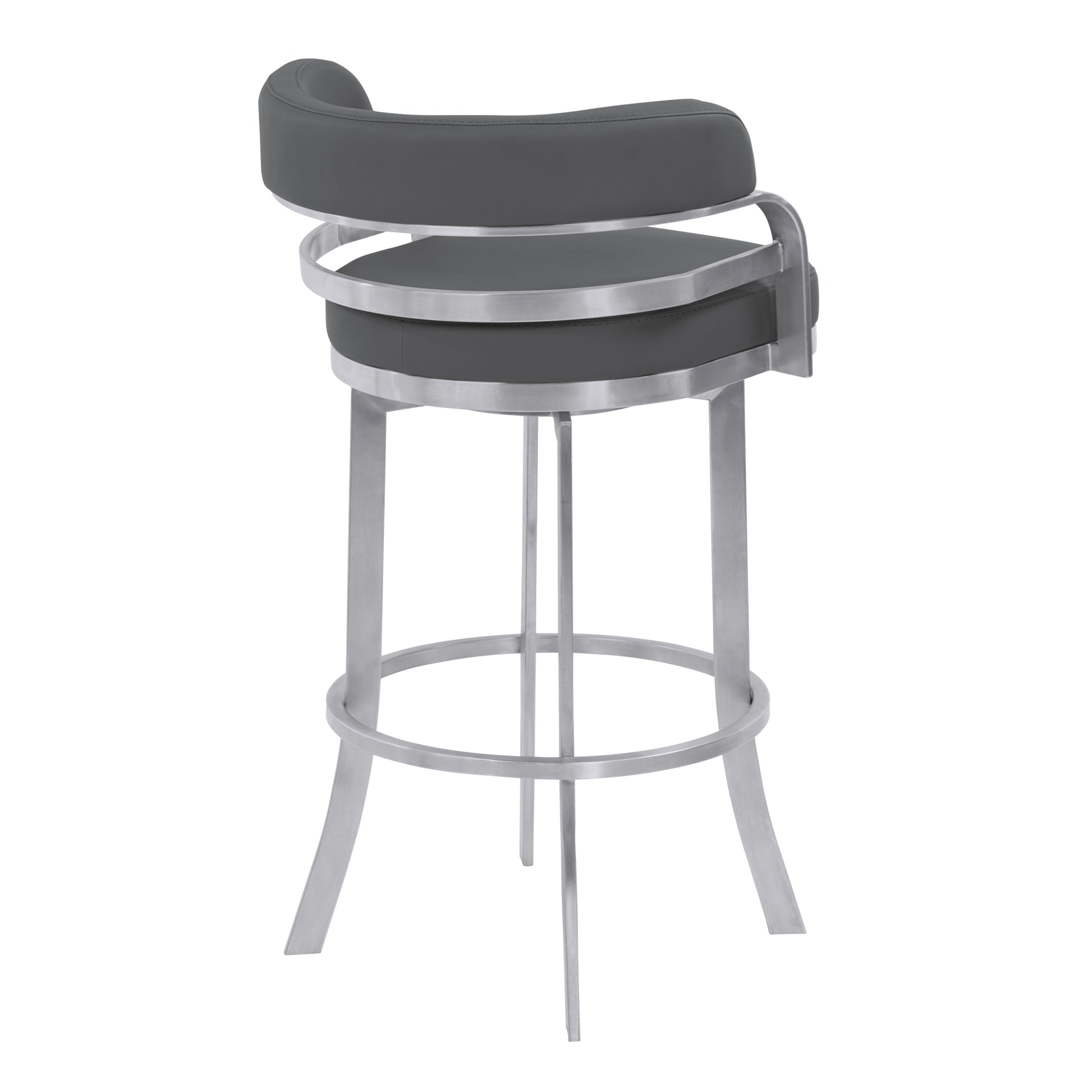 Prinz Counter and Bar Height Swivel Faux Leather Bar Stool with Brushed Stainless Steel